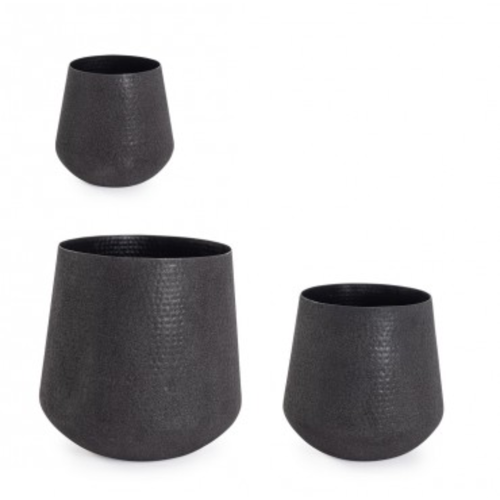 Set 3 Portavaso Kenar Tondo Nero in metallo lavorato artigianalmente.