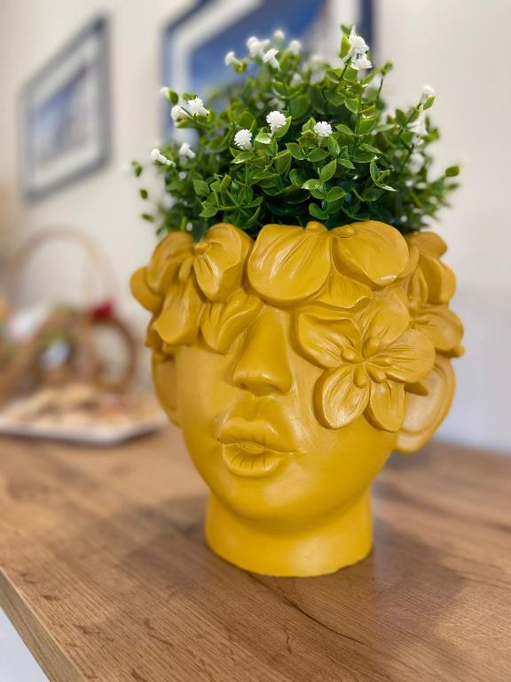 Posizionabile su un tavolo, una libreria o su un davanzale, questa statua rappresenta non solo un supporto per piante e fiori, ma anche una vera e propria opera d'arte.