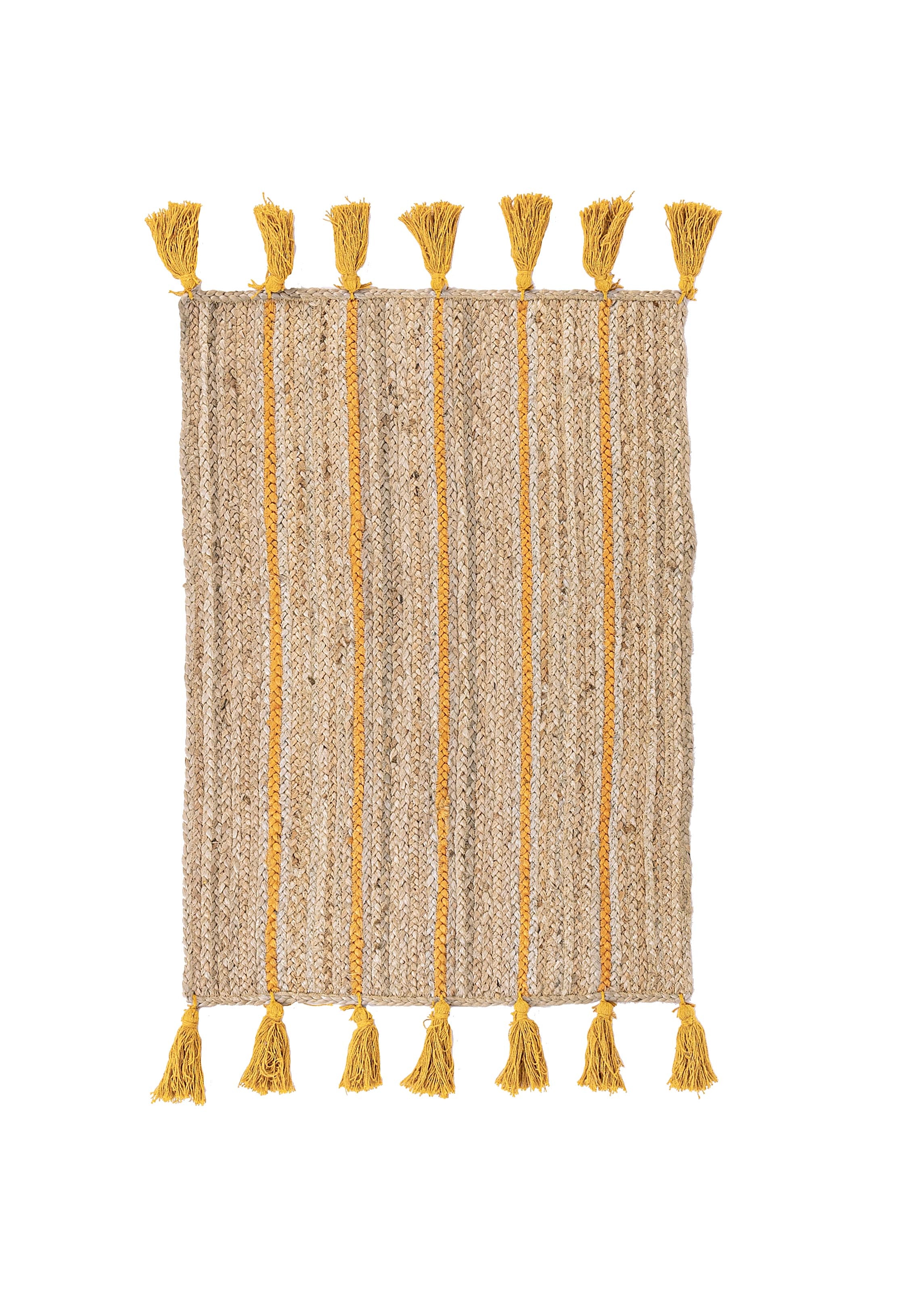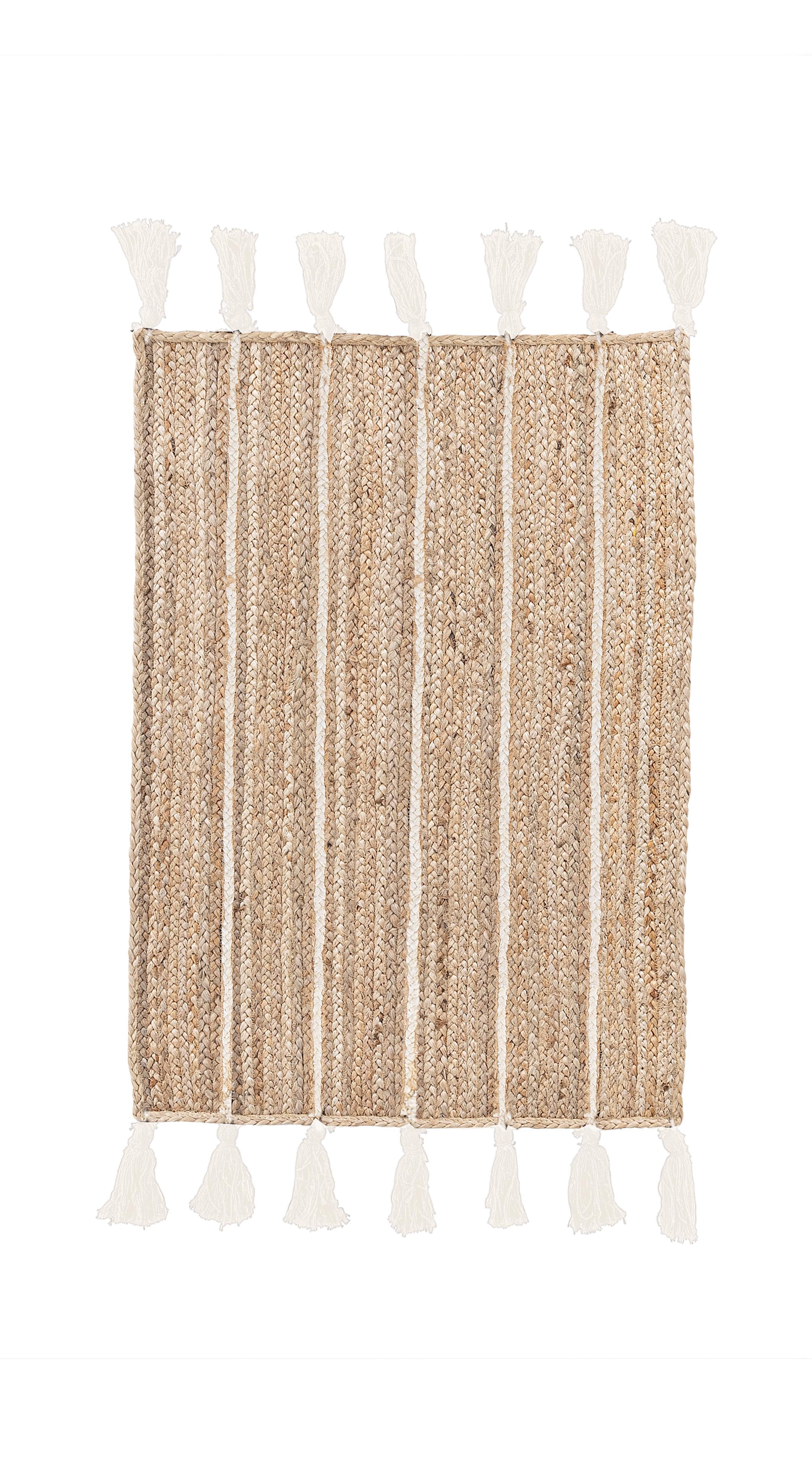 Con il suo design naturale arricchito da una frangia decorativa, questo tappeto aggiunge un tocco di calore e stile a qualsiasi ambiente.