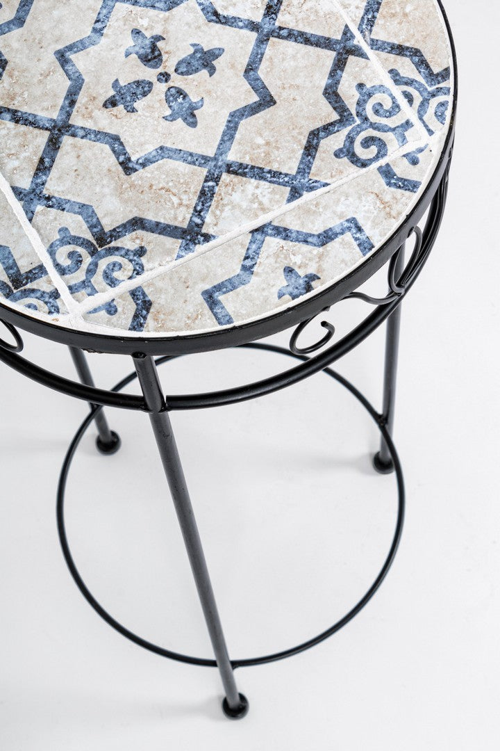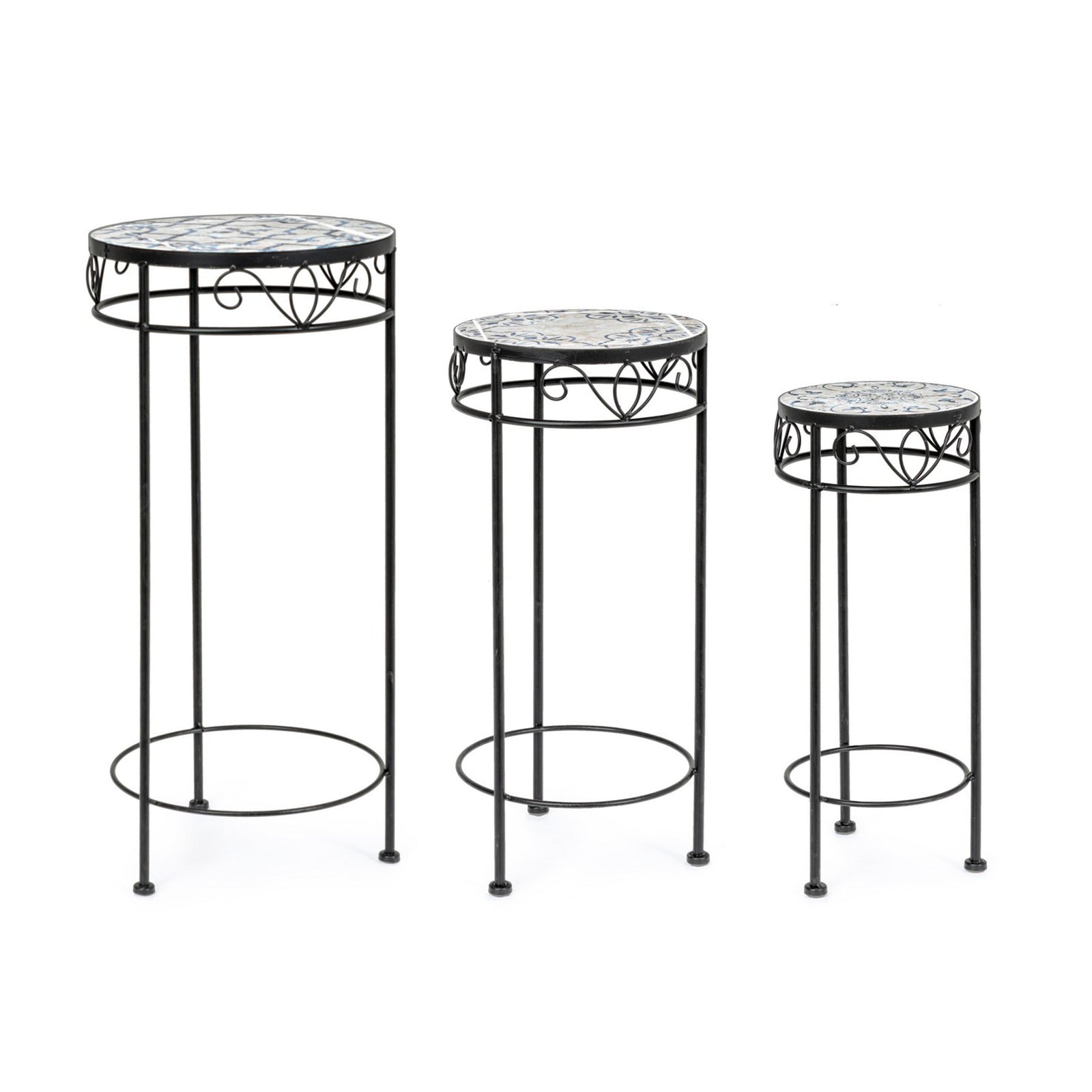 Tavolini "Erice" tondi struttura in acciaio con piani in ceramica set da 3