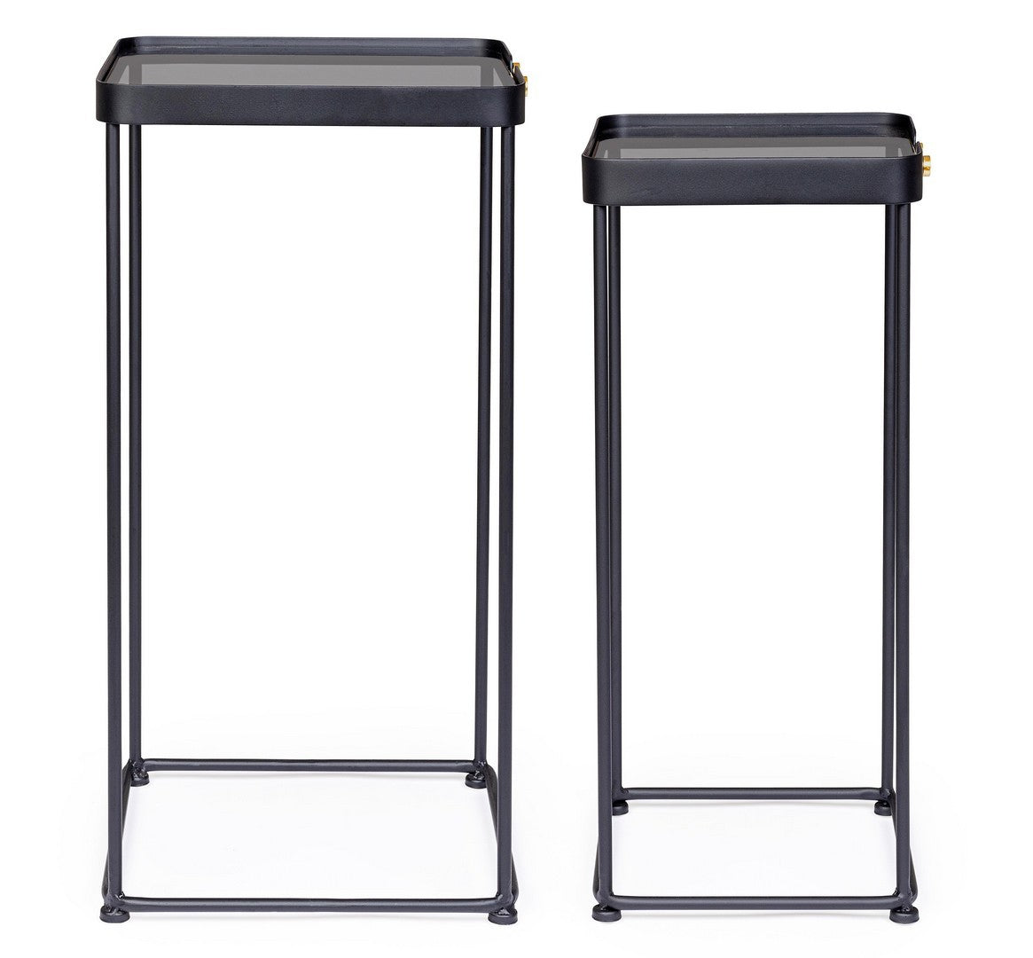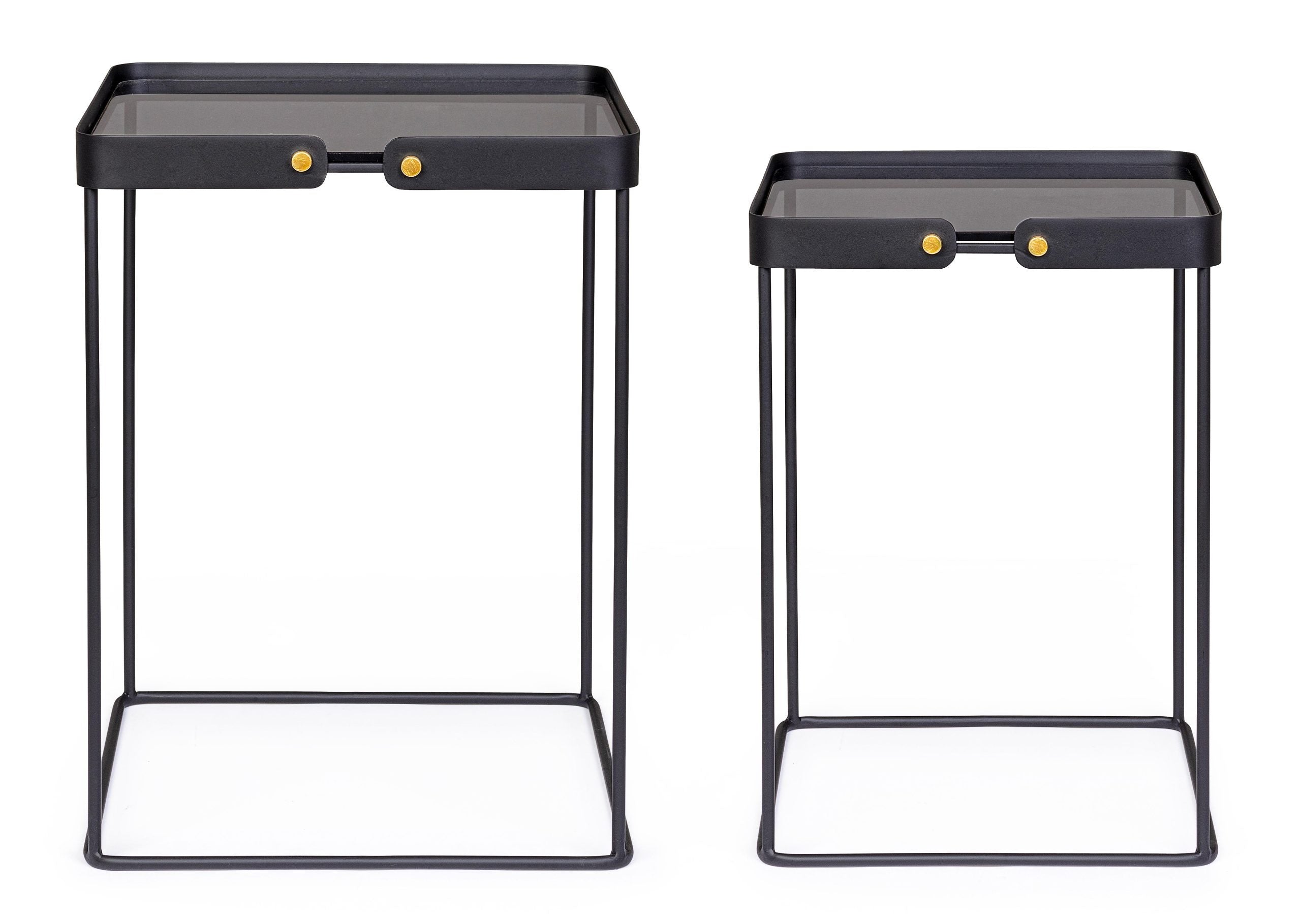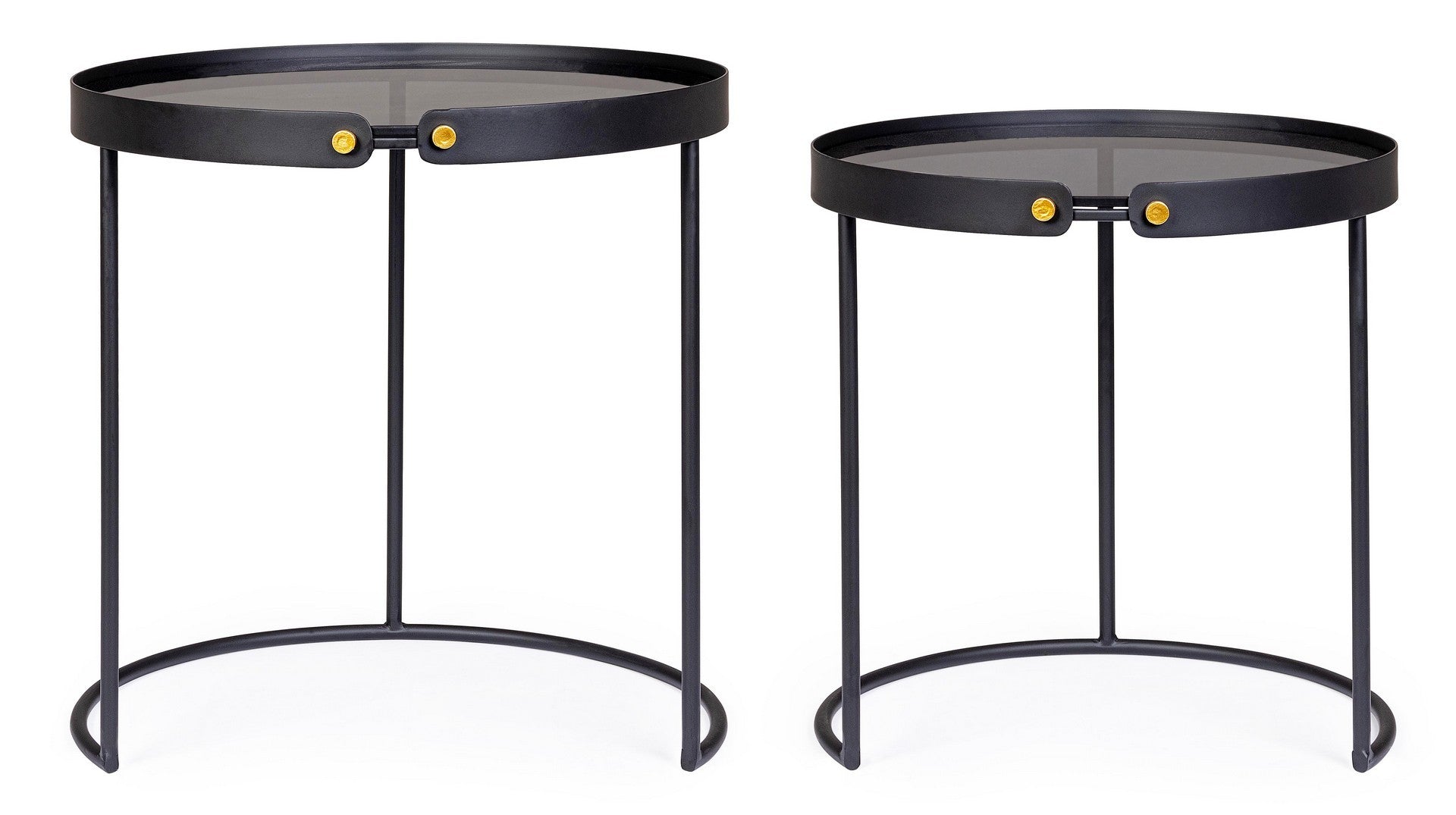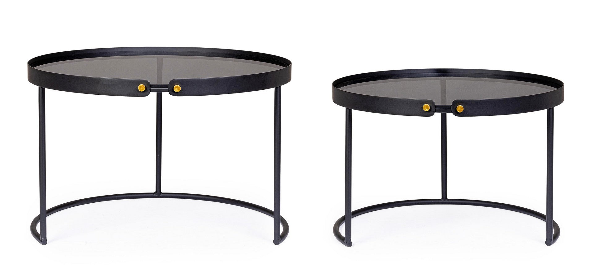 Tavolini "Zeina" struttura in acciaio piano in vetro temperato per arredamento set da 2