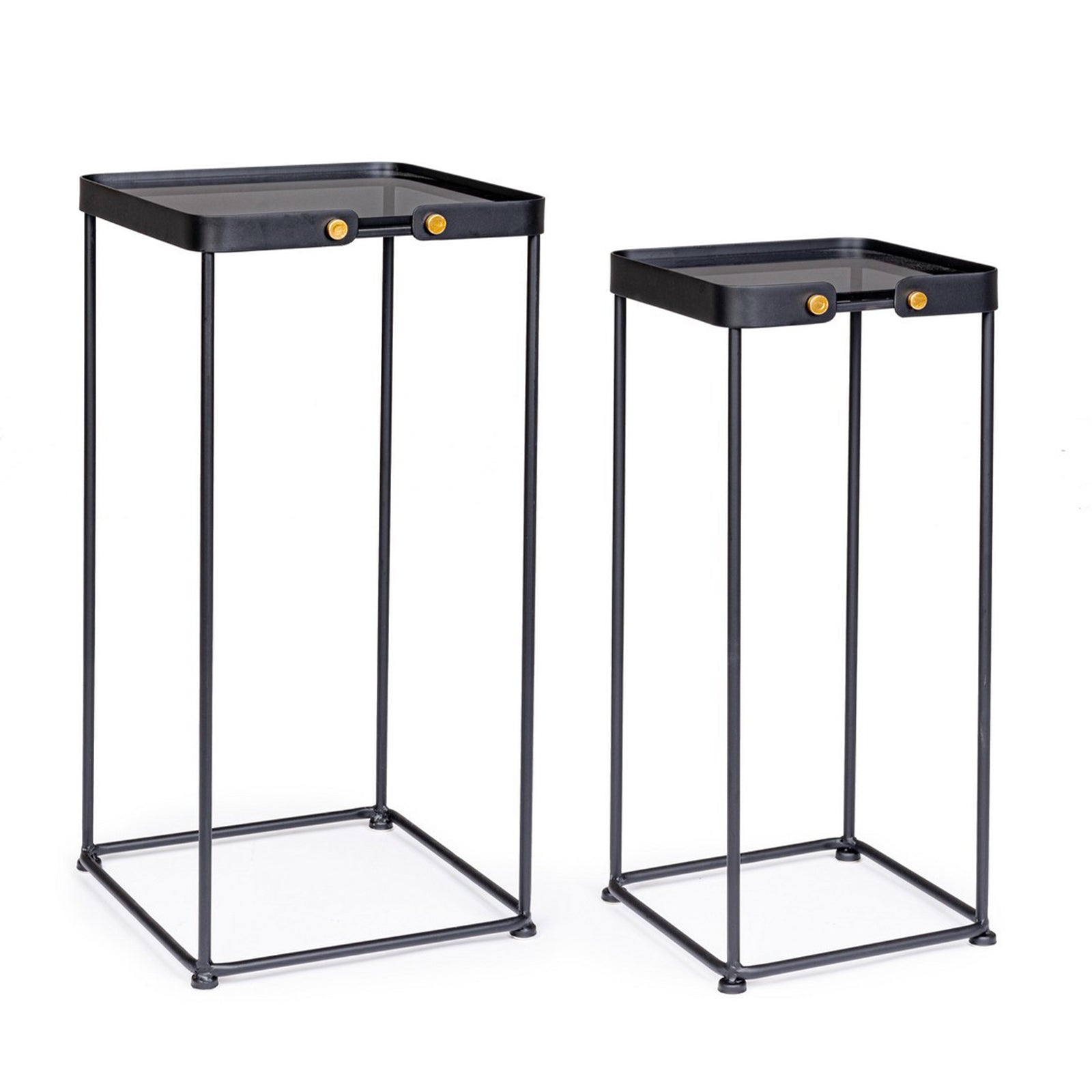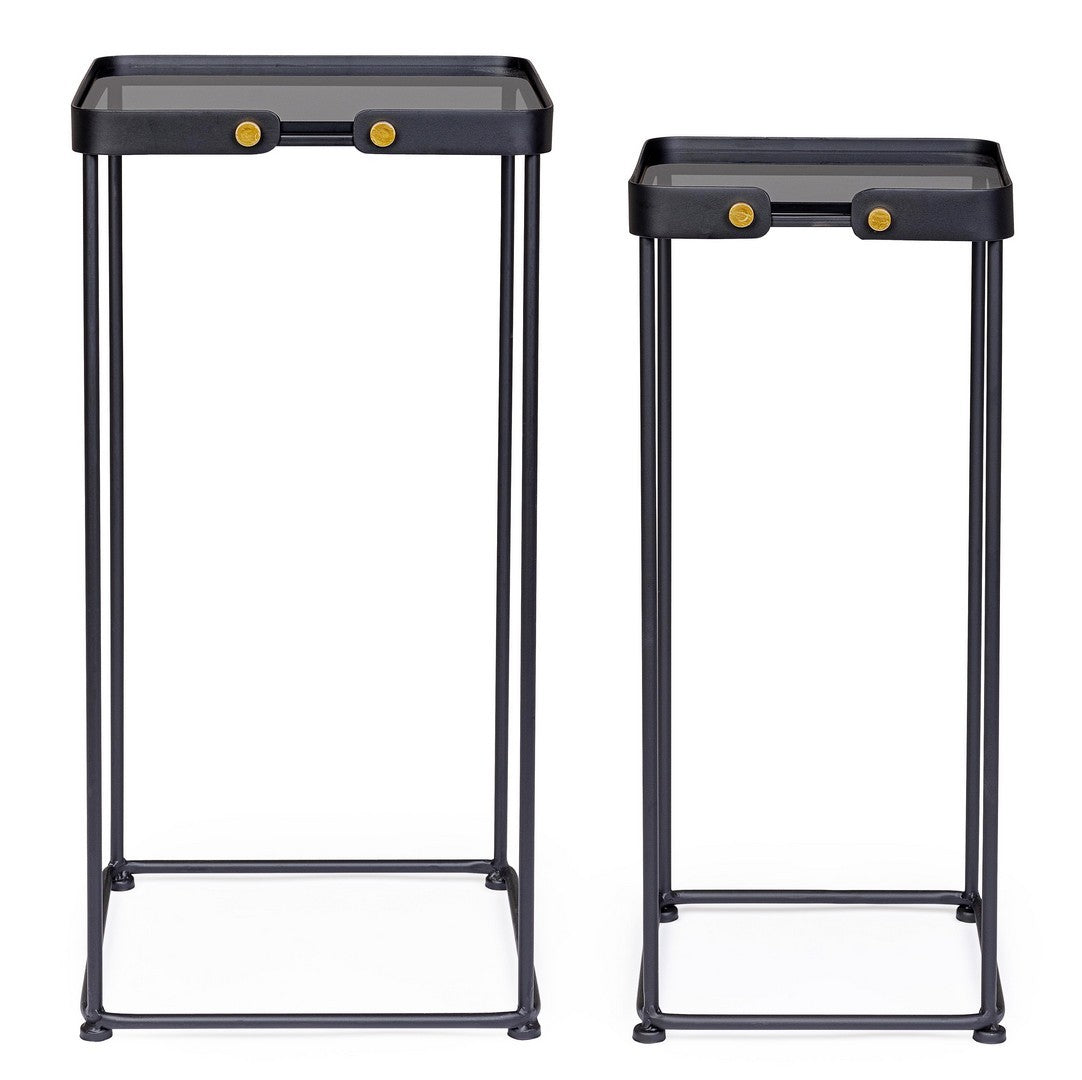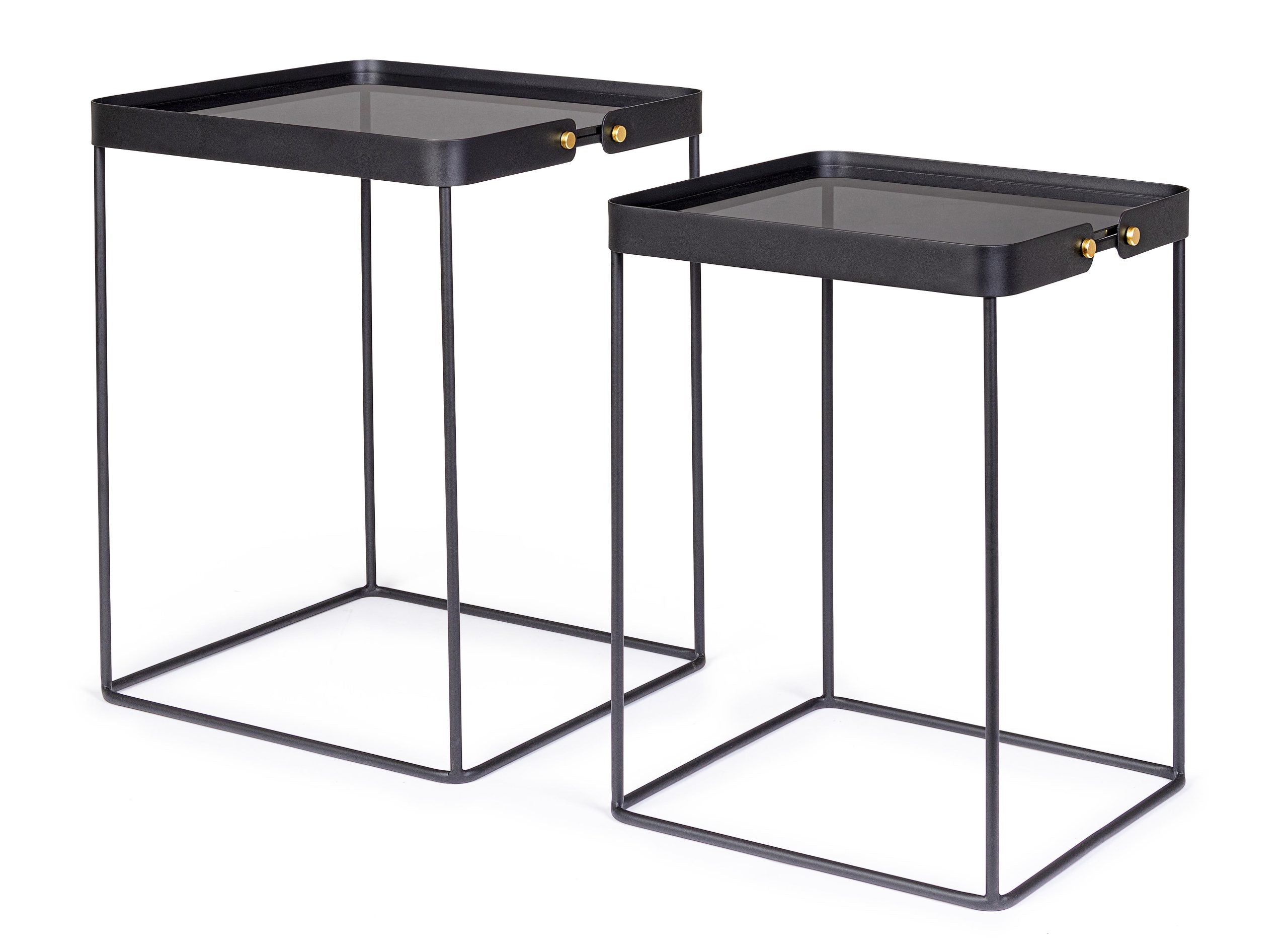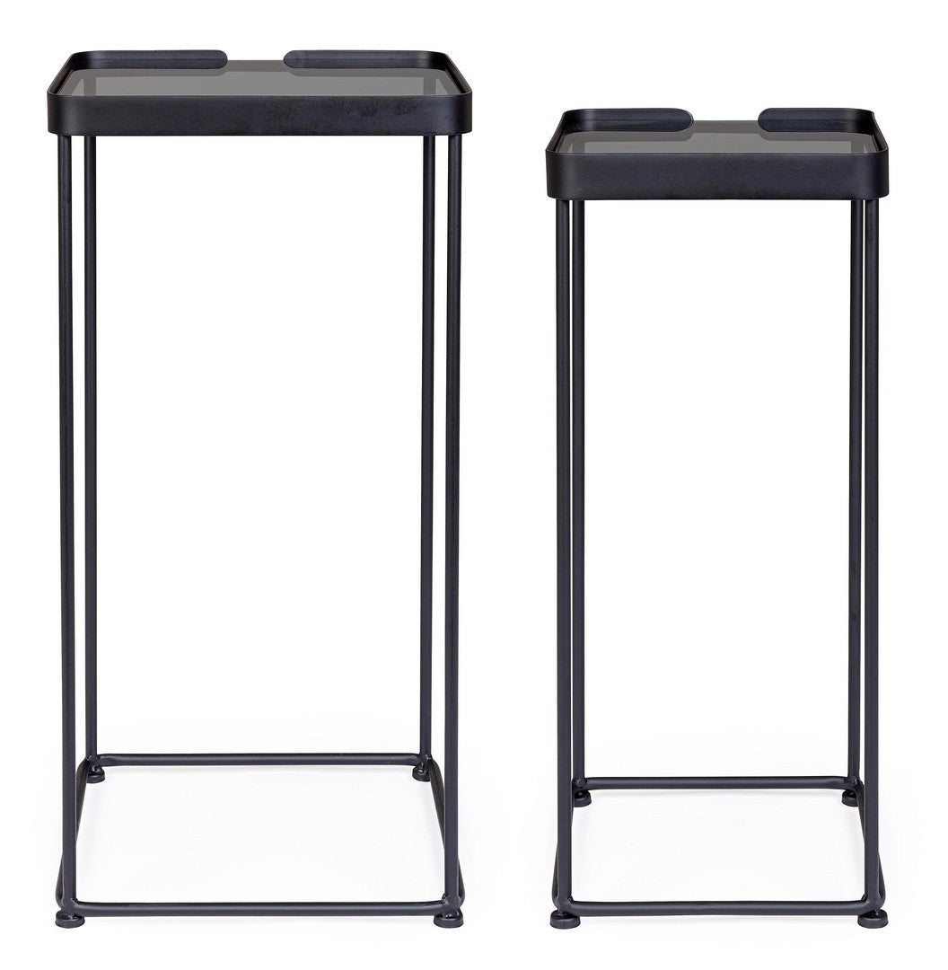 Tavolini "Zeina" struttura in acciaio piano in vetro temperato per arredamento set da 2