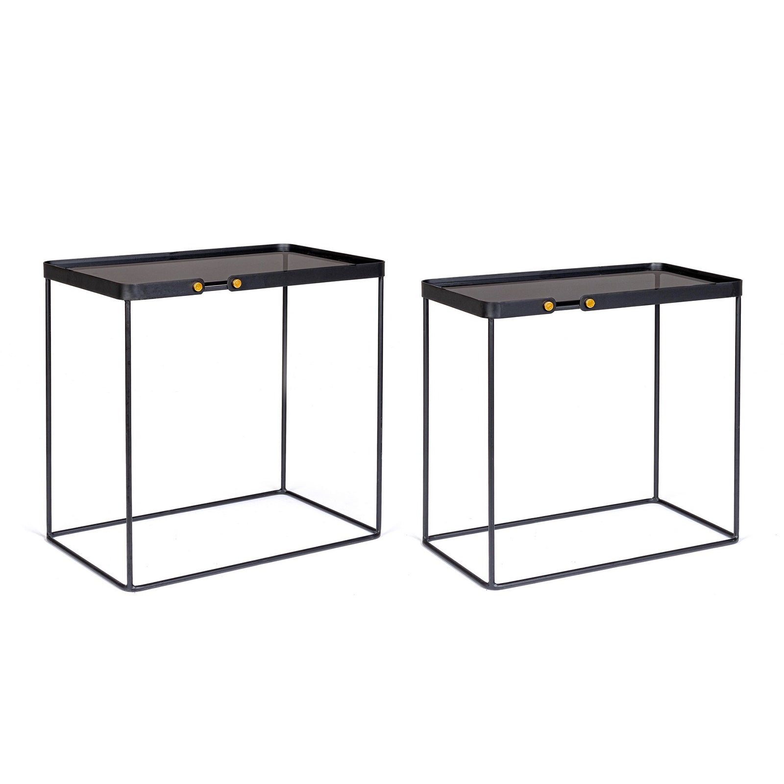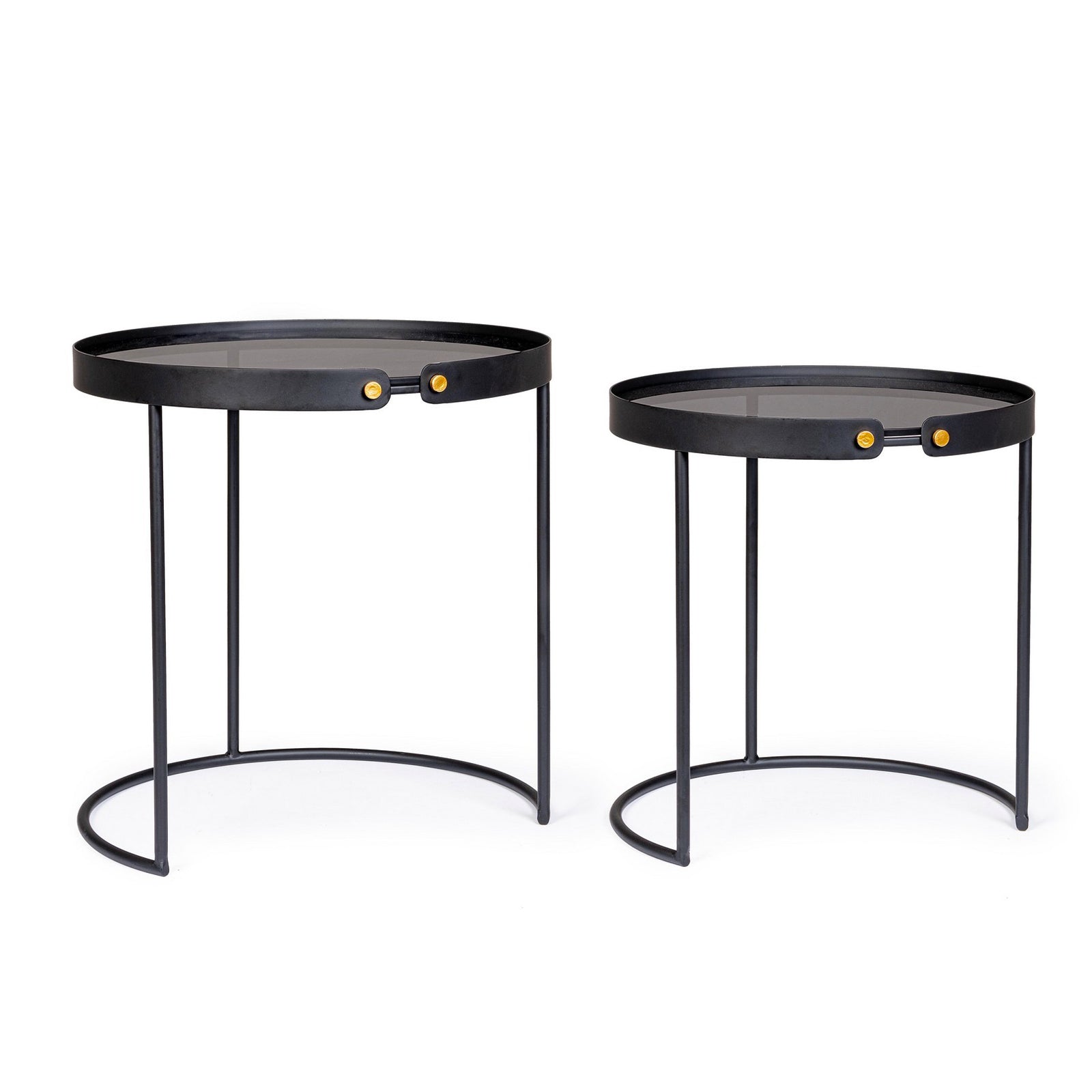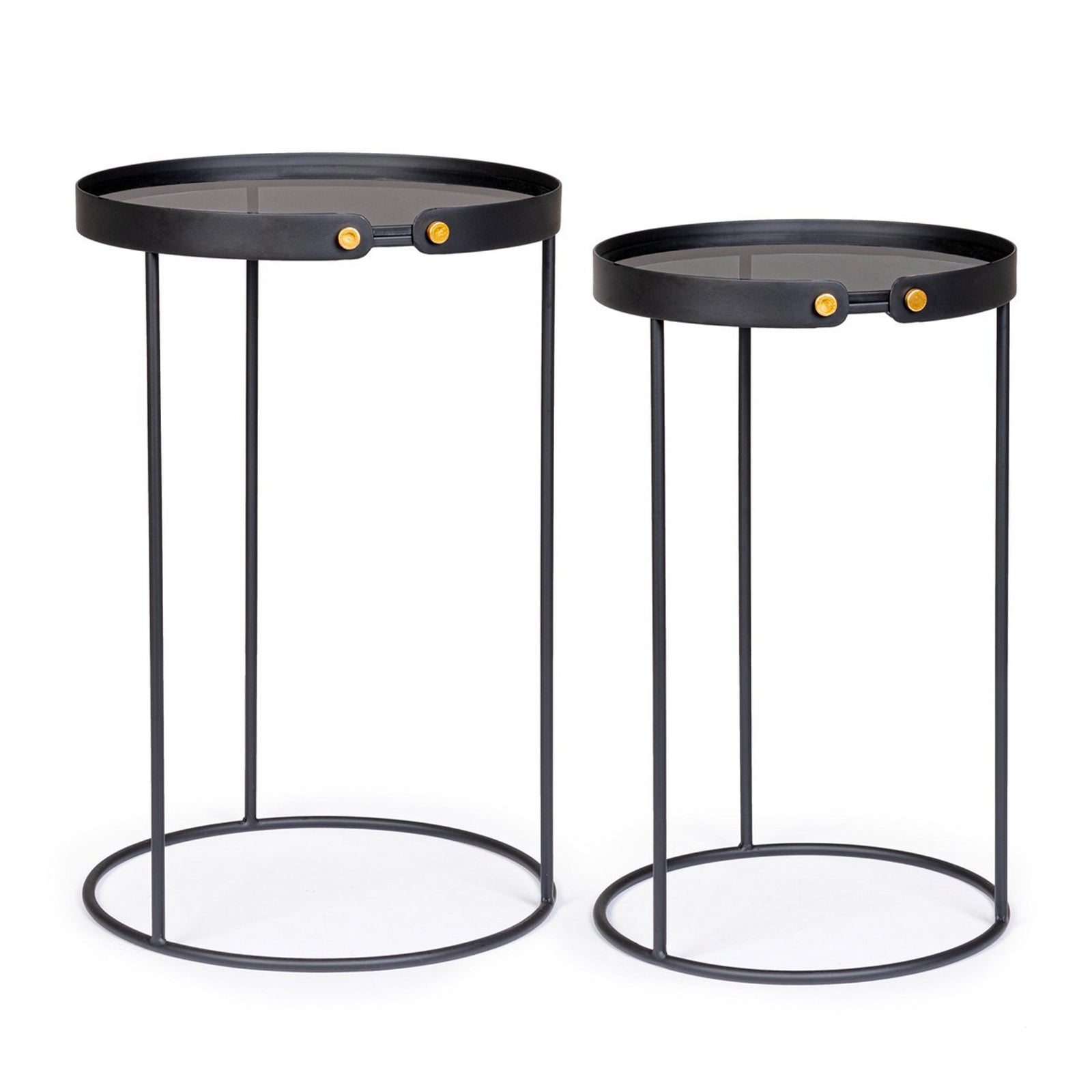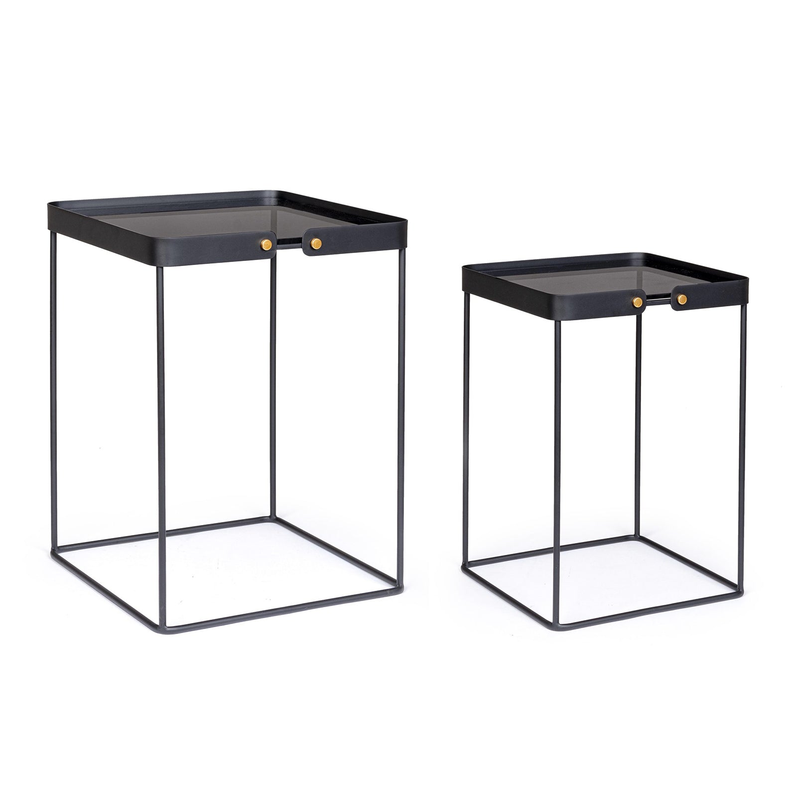 Tavolini "Zeina" struttura in acciaio piano in vetro temperato per arredamento set da 2