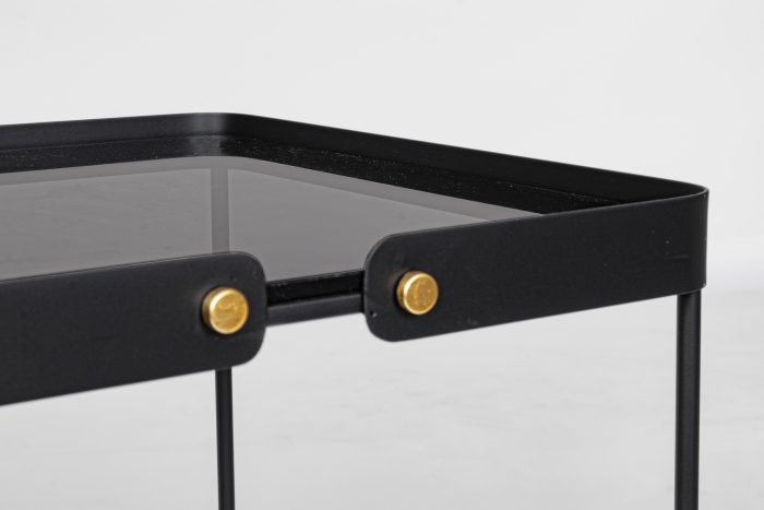 Ogni tavolino presenta una struttura robusta in acciaio, che non solo garantisce durabilità e stabilità ma aggiunge anche un tocco di stile industriale all'ambiente.