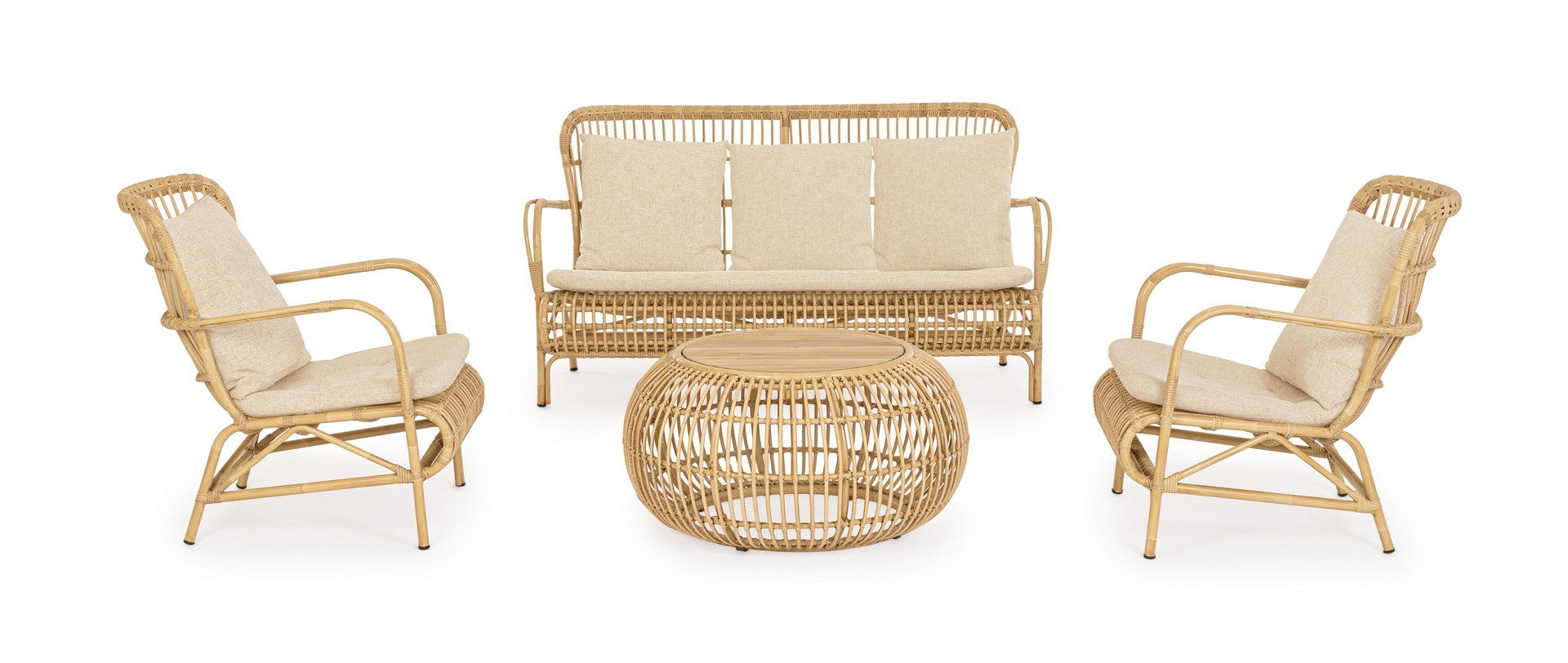 L'effetto rattan è ottenuto mediante una finitura dettagliata che imita fedelmente la texture e l'aspetto visivo del rattan, offrendo un look accogliente e naturale.