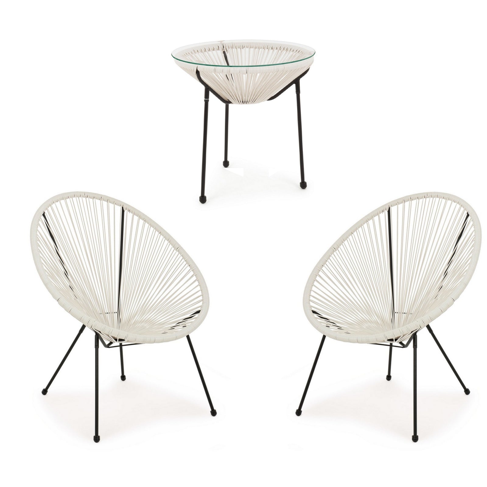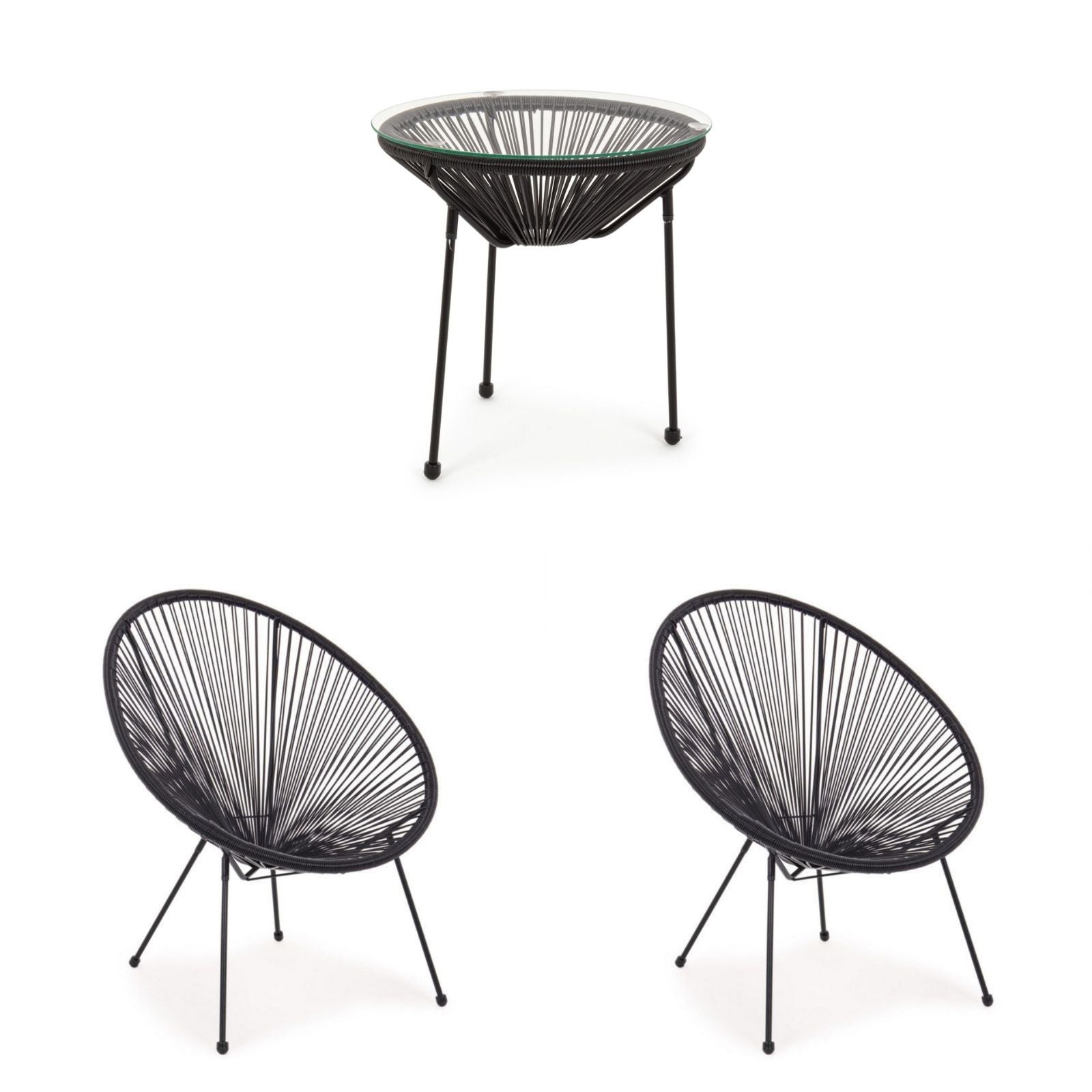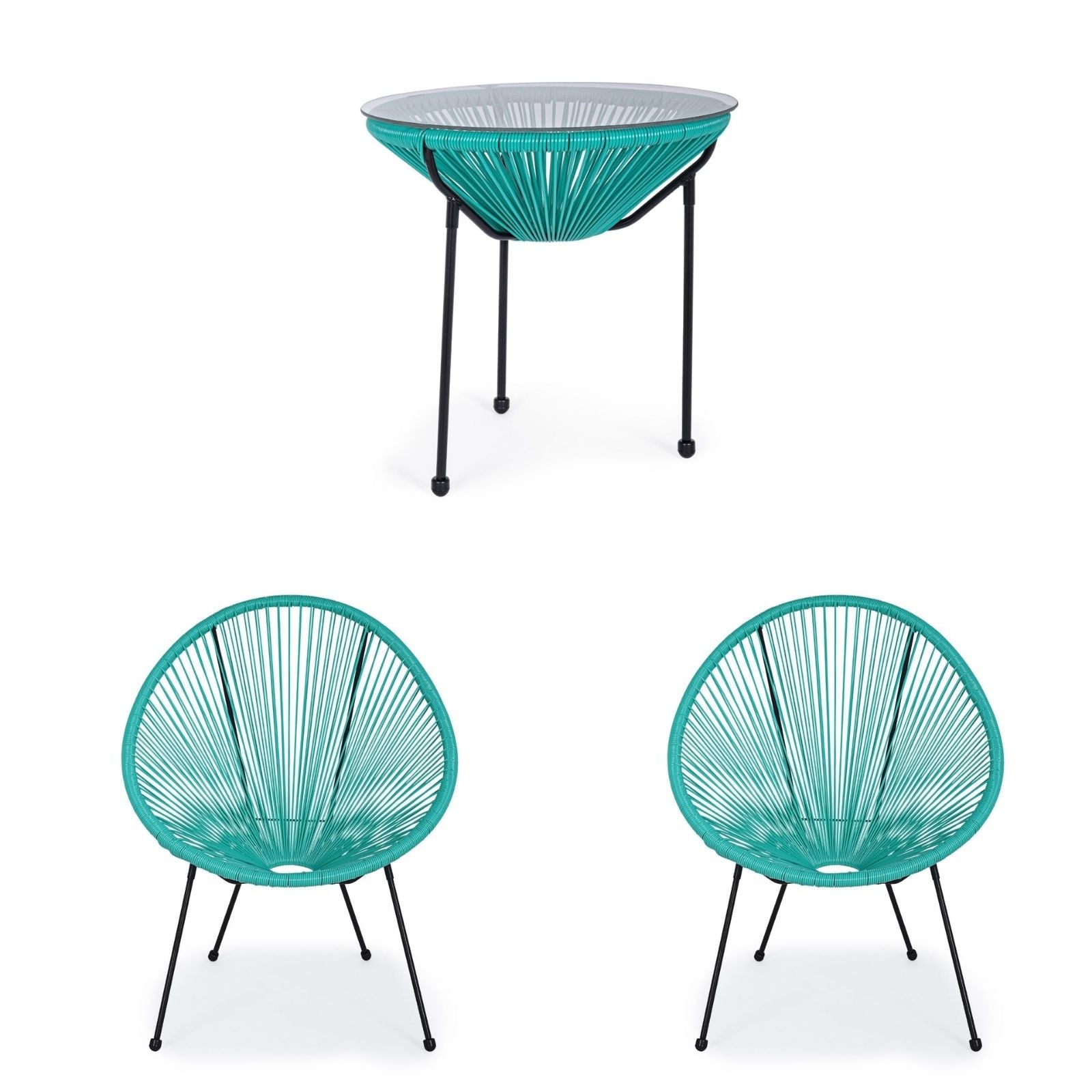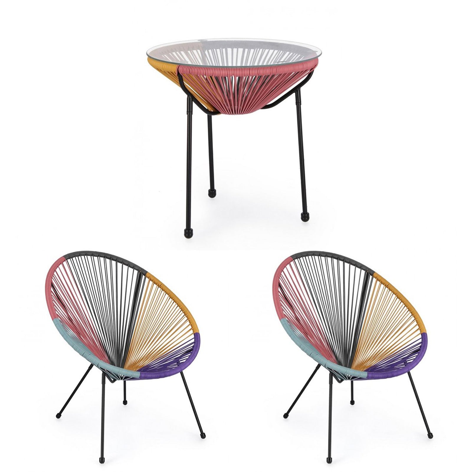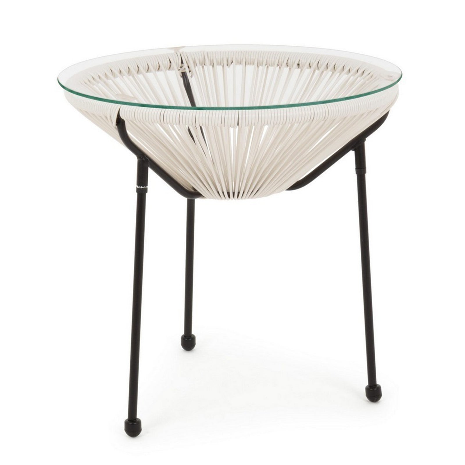 Tavolino moderno 50 cm "Parker" in corda sintetica per giardino e veranda