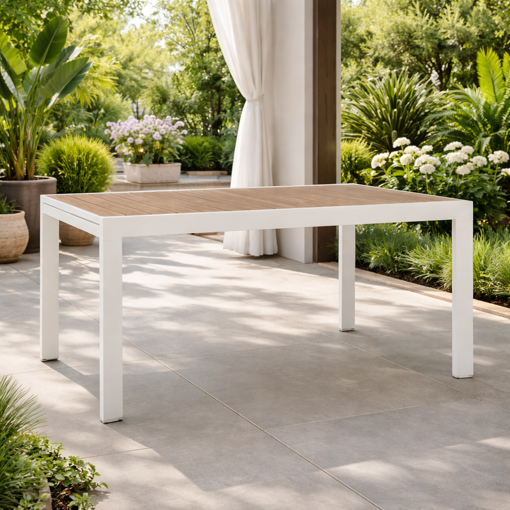 Il suo design pulito ed elegante lo rende perfetto sia per ambienti interni che esterni, adattandosi con naturalezza a terrazze, giardini, verande e sale da pranzo contemporanee.
