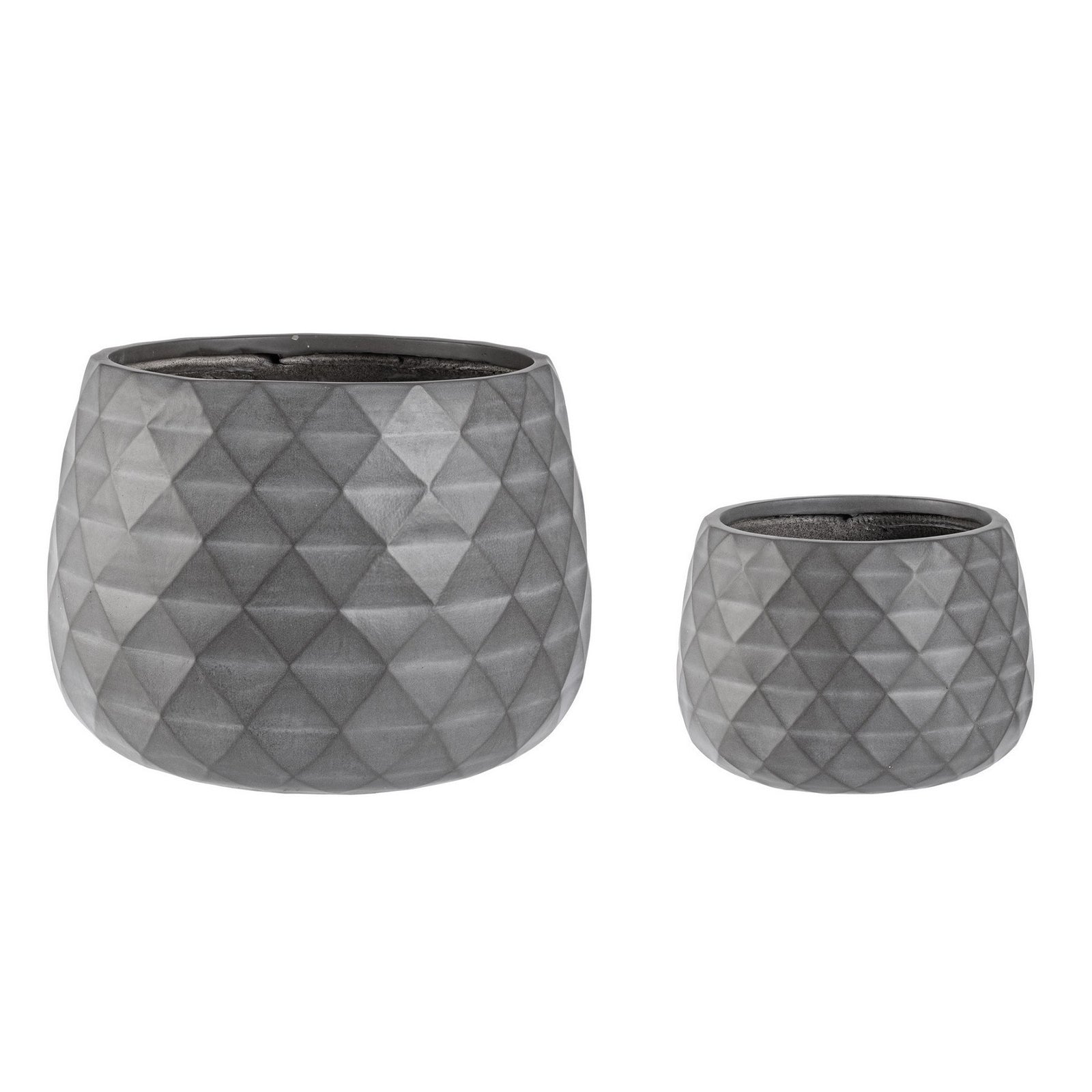 Vasi ciotola "Pyramid" in fibra di vetro color antracite da esterno per piante e fiori set da 2