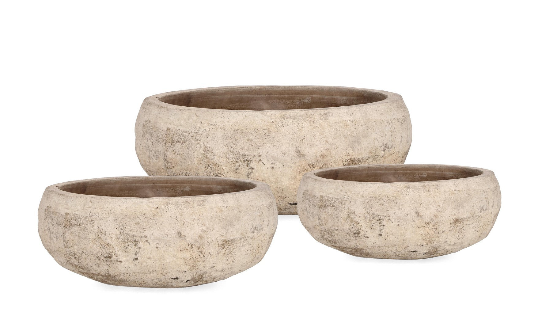 Il set comprende tre vasi di dimensioni gradualmente decrescenti, che possono essere posizionati insieme per creare un effetto visivo dinamico e armonioso, ideale per ospitare piante di diverse altezze e varietà, come fiori, arbusti o piccole piante ornamentali.