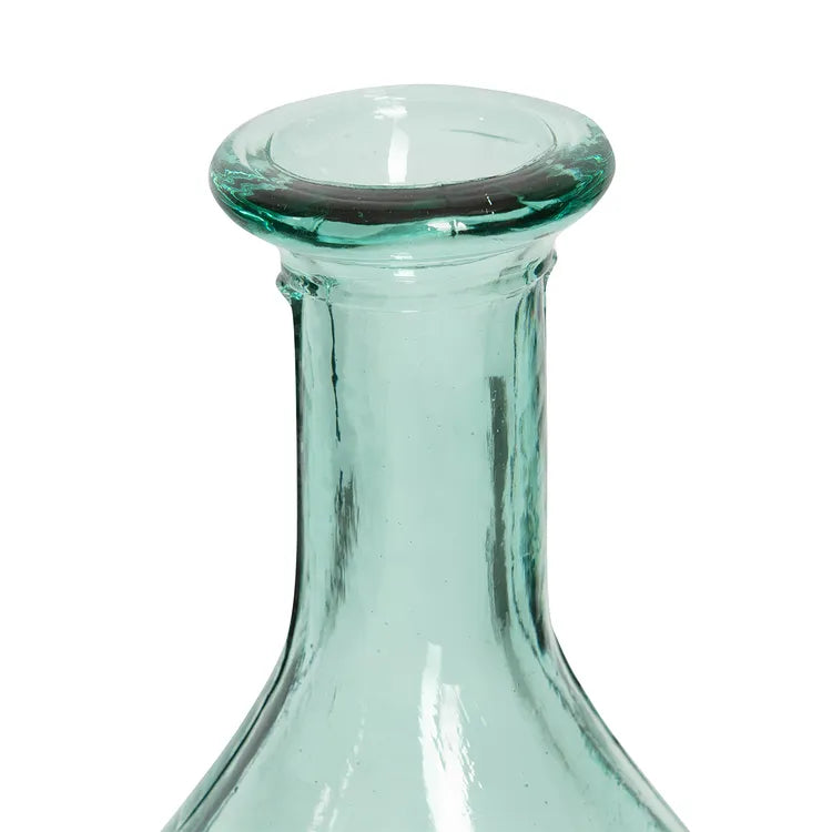 Questo elegante vaso in vetro, caratterizzato da una forma ispirata a una bottiglia di grandi dimensioni, è un elemento decorativo sofisticato e versatile.