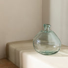 Questo raffinato vaso in vetro liscio, dalla forma ispirata a una bottiglia, è un elemento decorativo versatile e sofisticato.