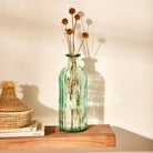 Questo splendido vaso in vetro rigato, dalla forma ispirata a una bottiglia, unisce stile e raffinatezza per arricchire qualsiasi ambiente con un tocco di originalità. Le sue linee incise donano movimento e profondità, creando giochi di luce che esaltano la sua eleganza. Perfetto per decorare soggiorni, tavoli, mensole e ingressi, può essere utilizzato con fiori freschi, secchi o come elemento decorativo indipendente.