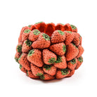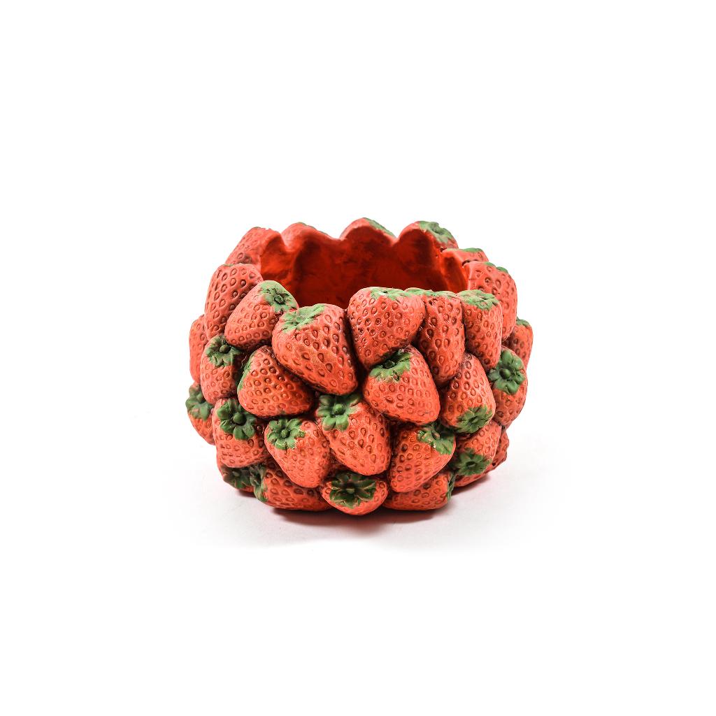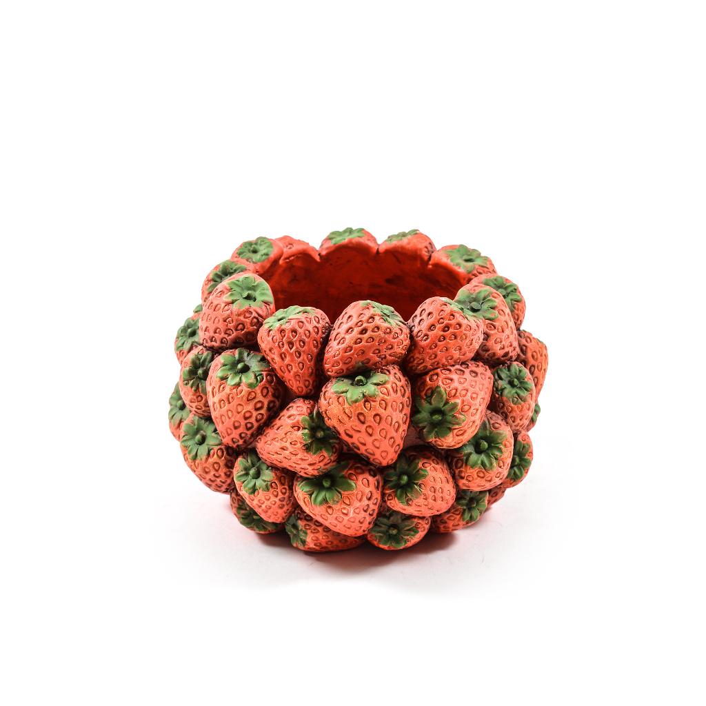 Aggiungi un tocco di originalità e freschezza ai tuoi spazi con questo elegante vaso in cemento decorato con fragole.