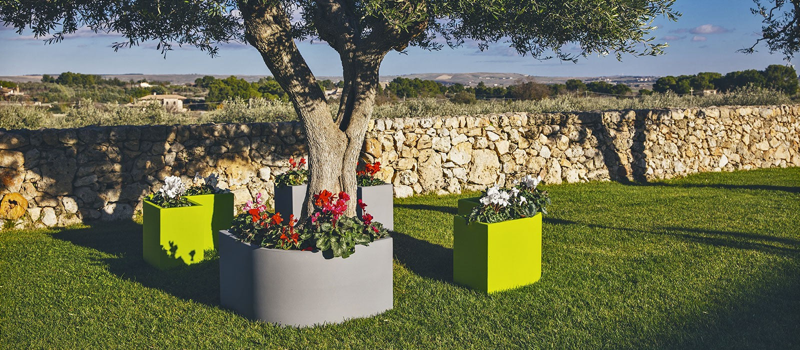 Verande, a bordo piscina o all’esterno di un locale lounge Flowerpot, con le sue ampie misure, permette di creare location colorate e divertenti.