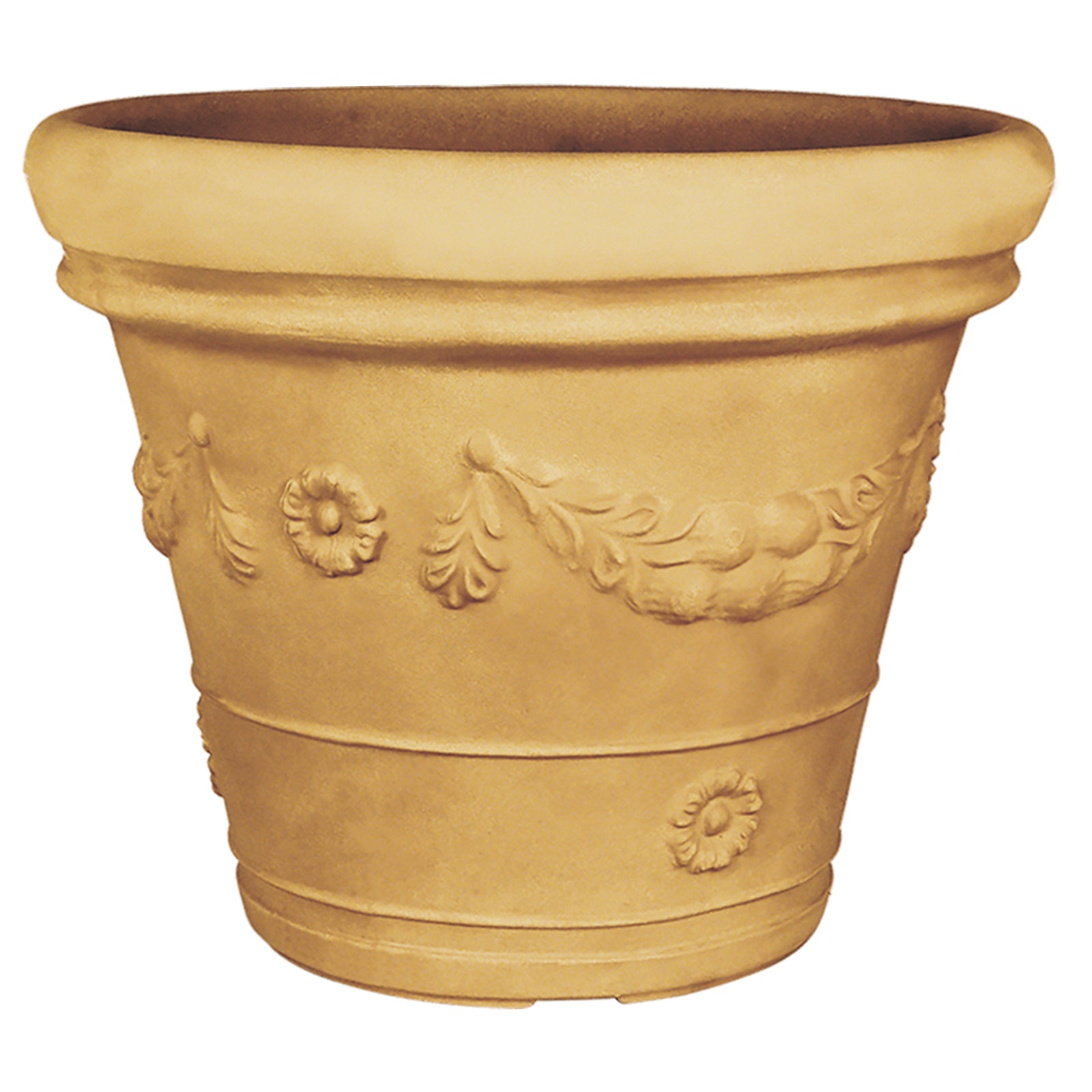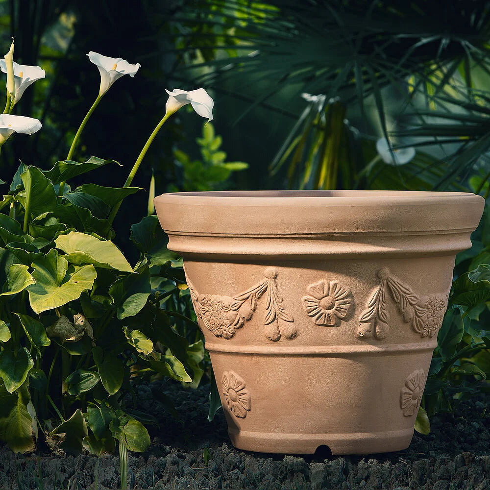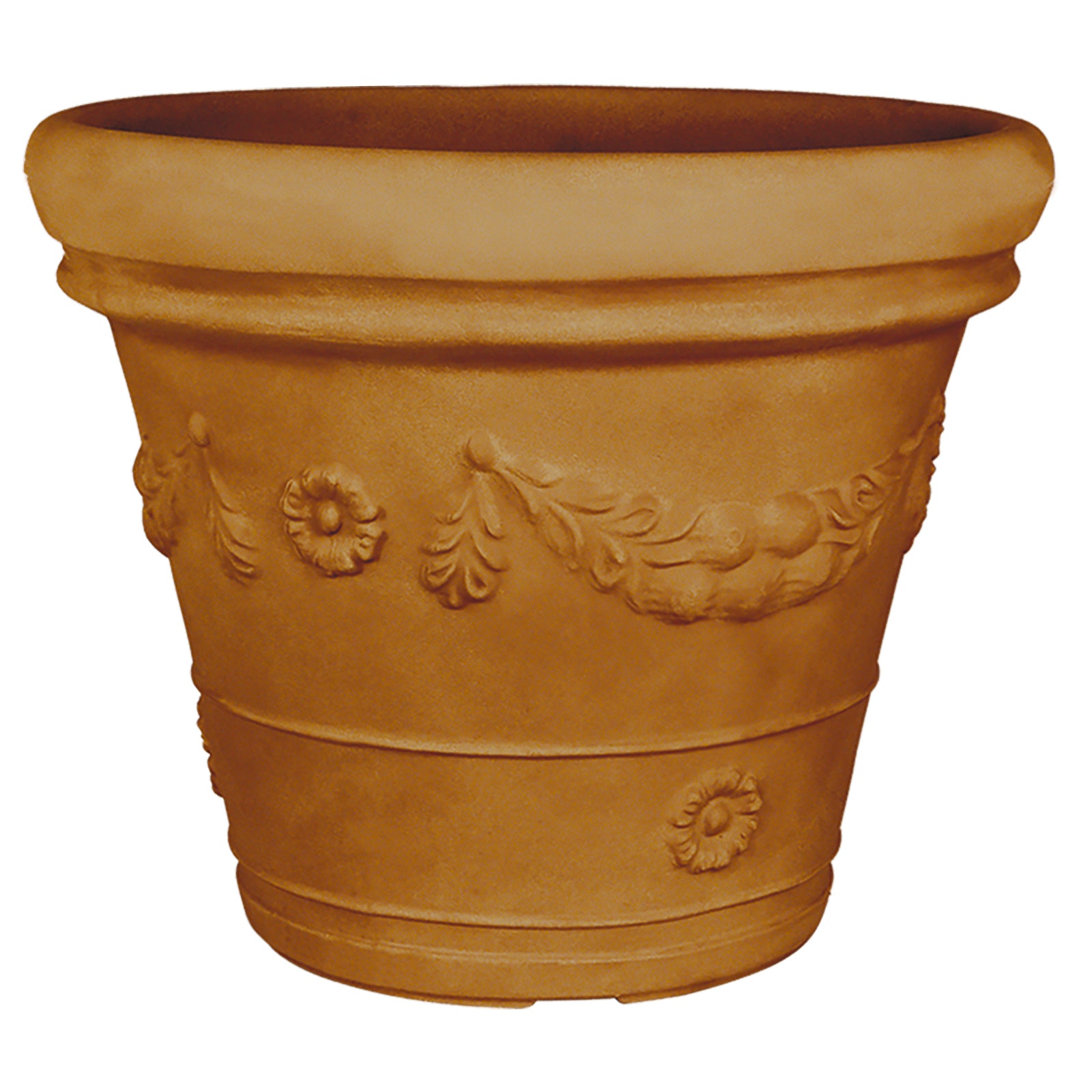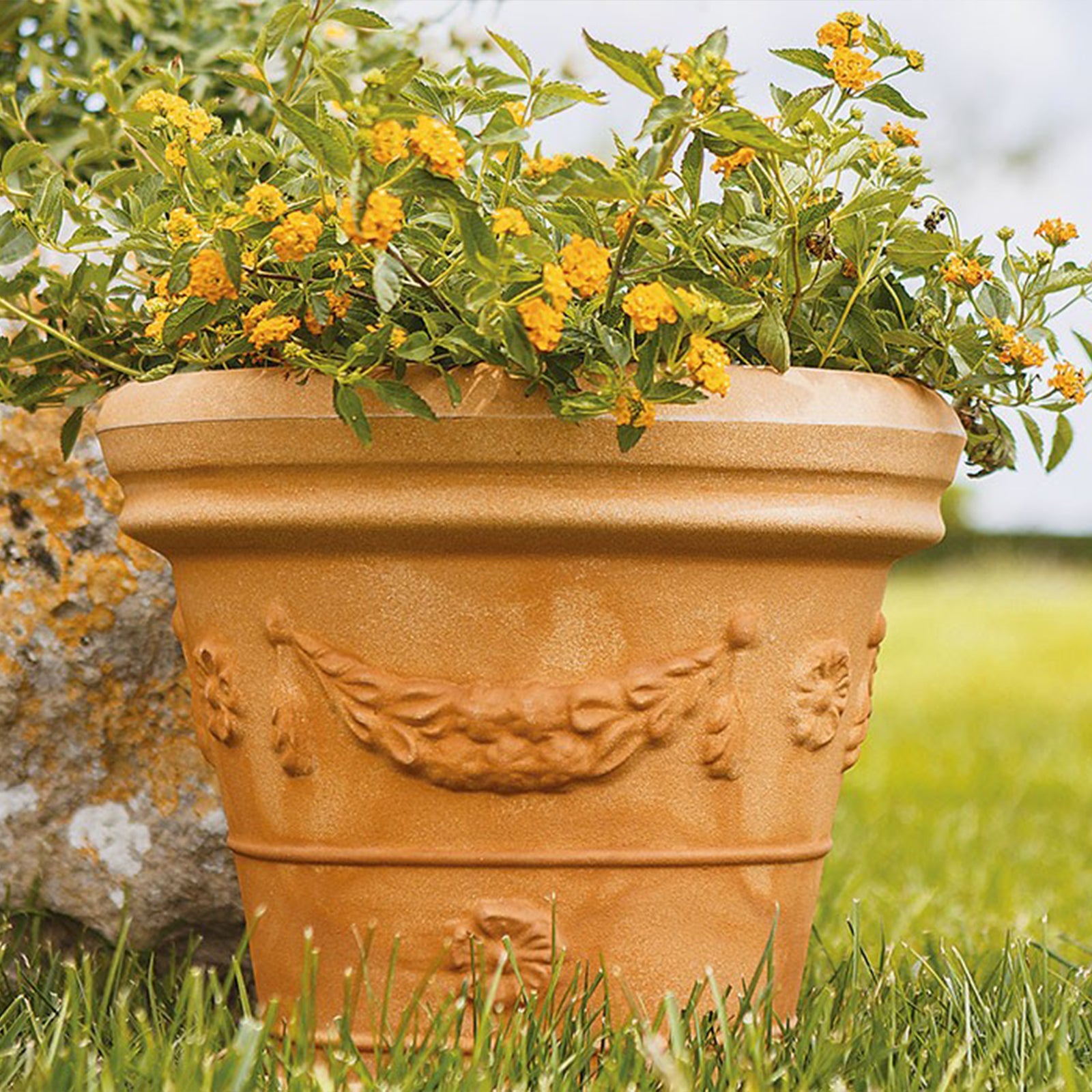 Vaso Doppiobordo Festone rotondo in resina con decorazione per esterno "Made in Italy"
