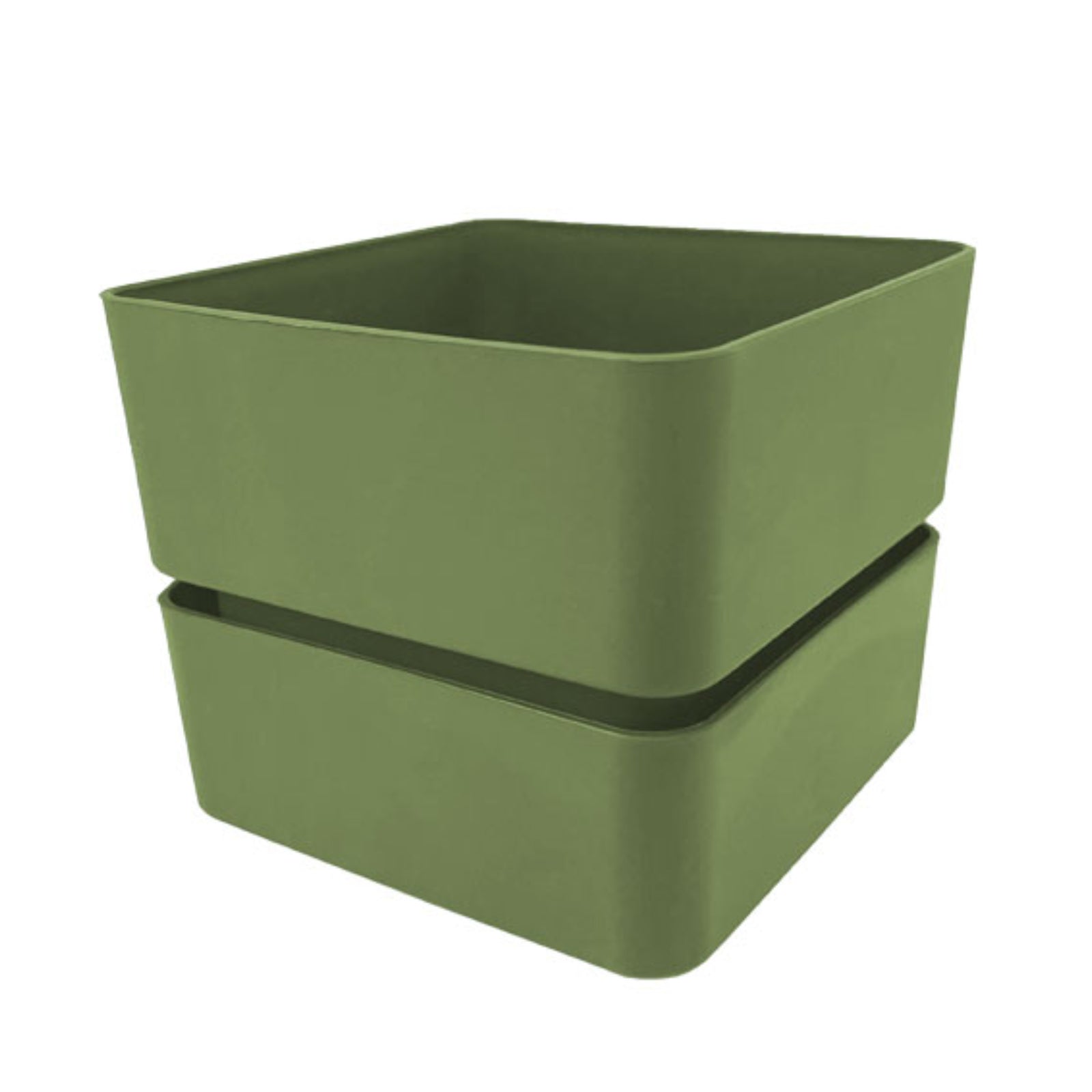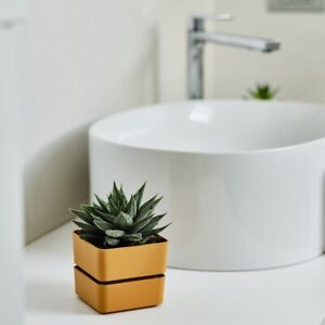 Self-watering system: la riserva d'acqua permette di alimentare la pianta senza bisogno di irrigarla spesso. I fori di drenaggio permettono di scaricare eventuali eccessi d'acqua consentendo alla pianta di attingere alla riserva se necessario.