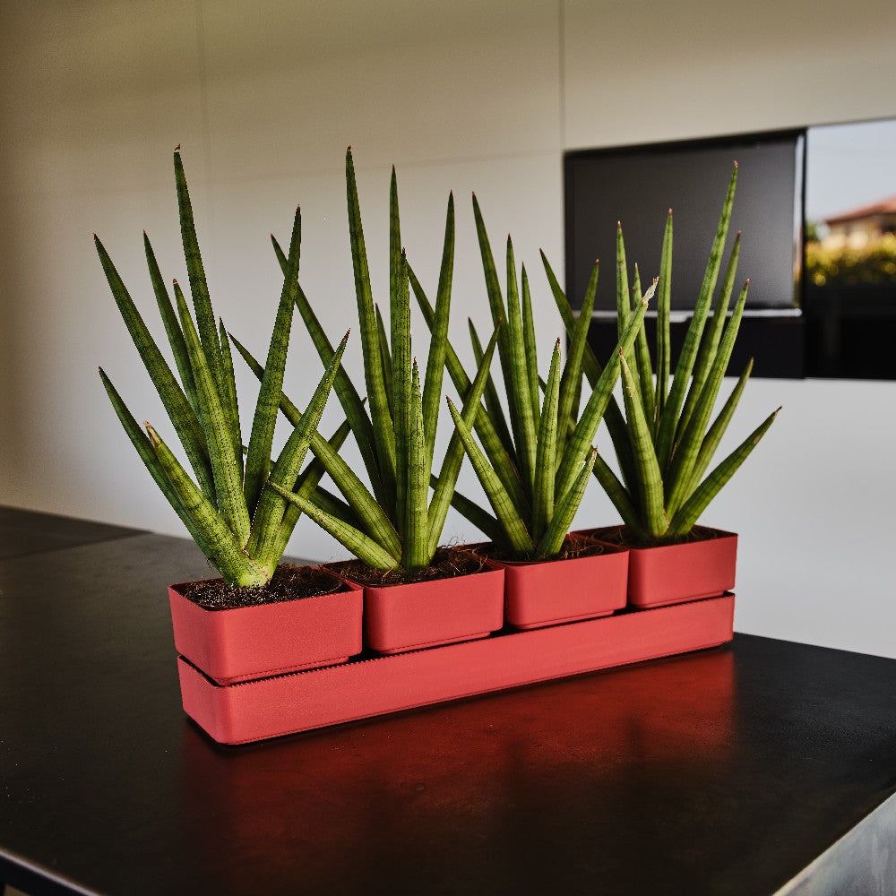 Self-watering system: la riserva d'acqua permette di alimentare la pianta senza bisogno di irrigarla spesso. I fori di drenaggio permettono di scaricare eventuali eccessi d'acqua consentendo alla pianta di attingere alla riserva se necessario.