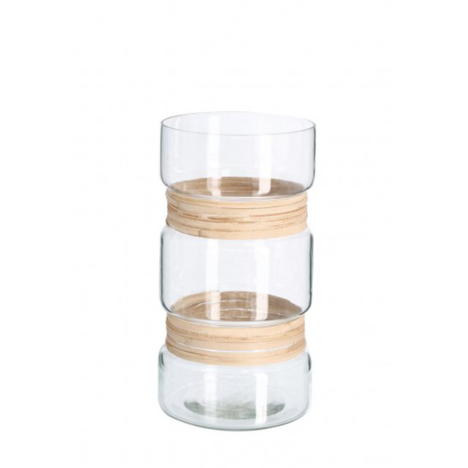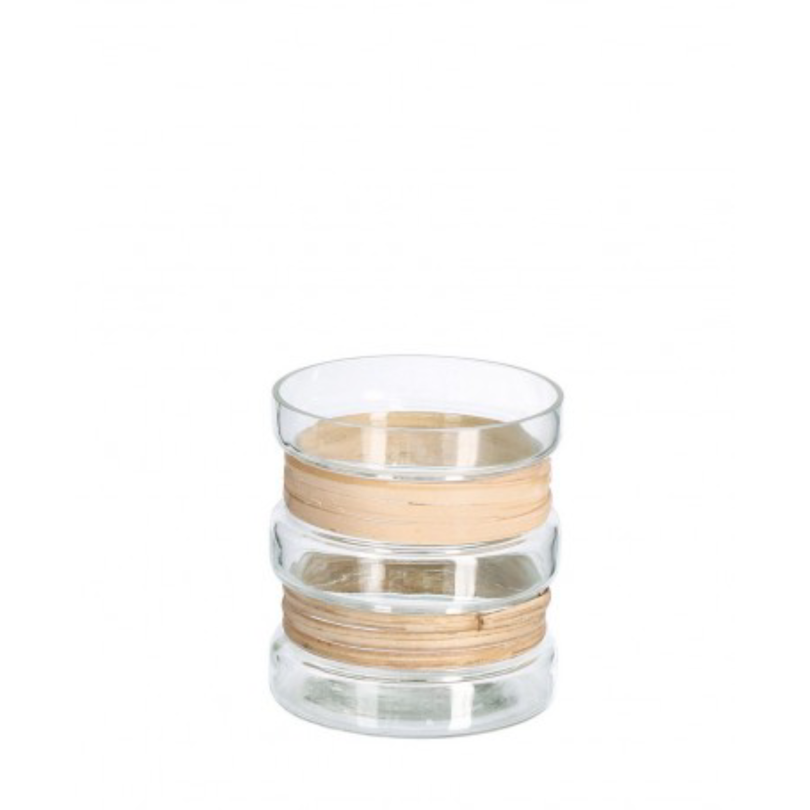 Realizzato con cura a mano utilizzando vetro e rattan da verga, questo vaso incarna un'eleganza semplice e autentica.