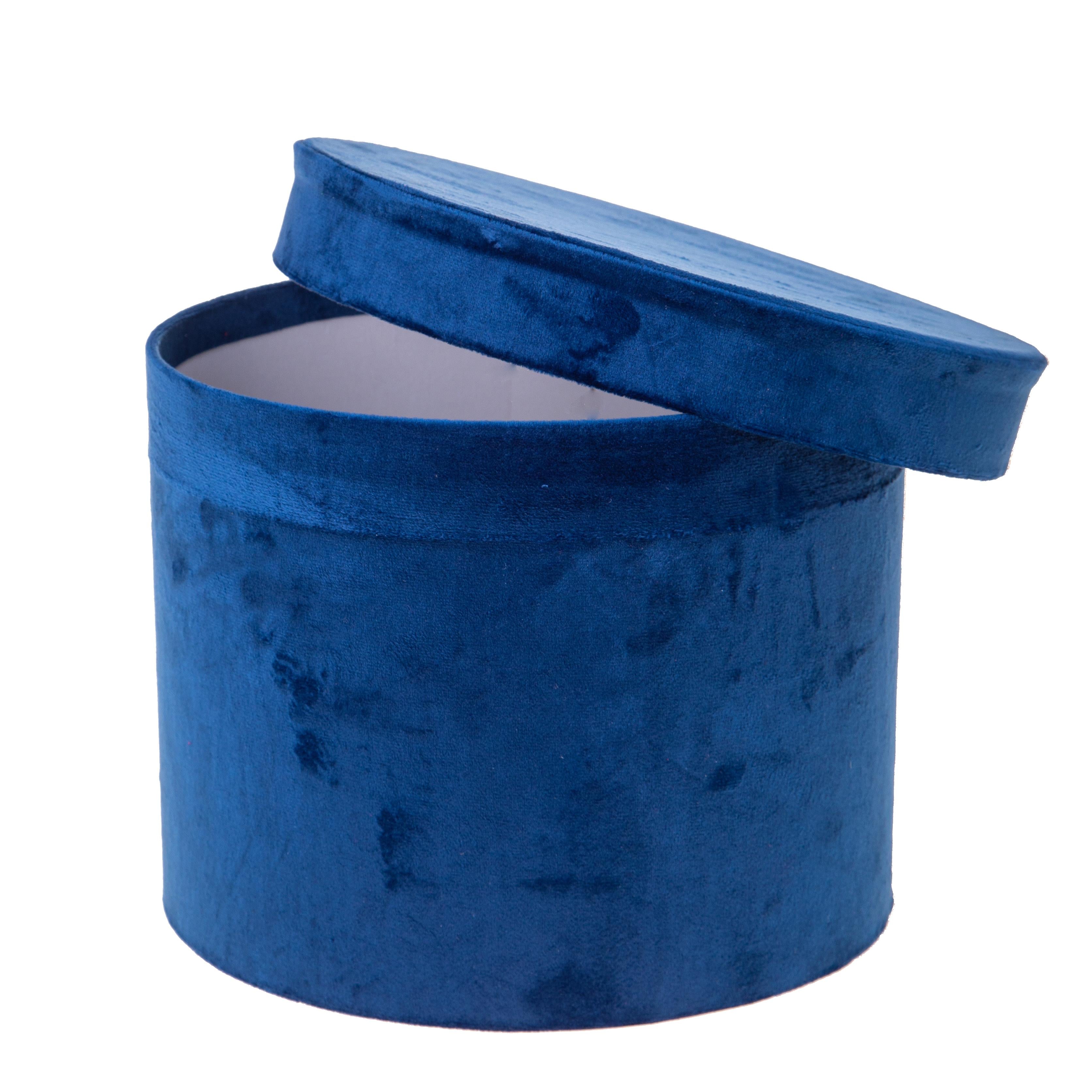 Cappelleria con coperchio azzurra in velluto per decorazioni interne h 20 cm