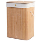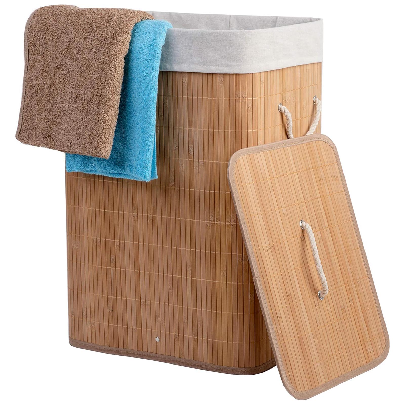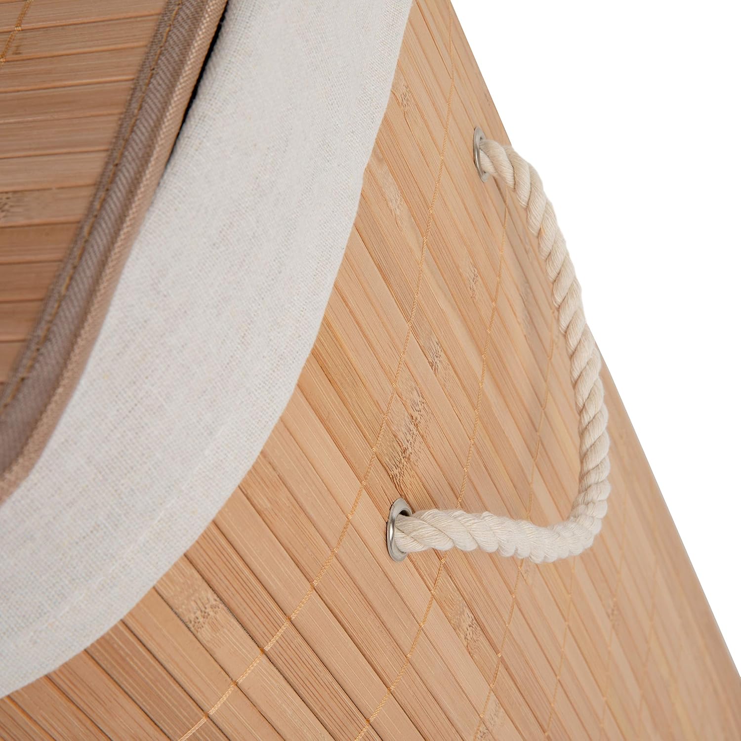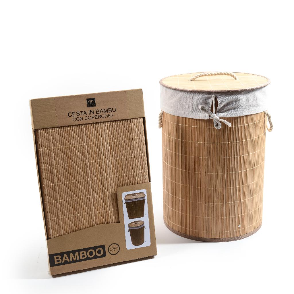 Cesto per lavanderia con sacca in tessuto e coperchio in bambù