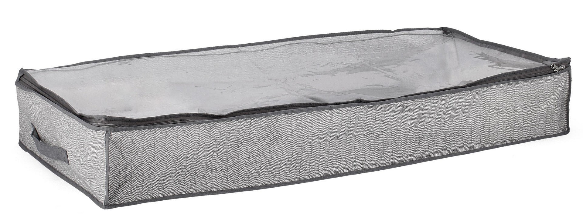 In sintesi, il contenitore per coperte "Tidy" rappresenta una soluzione elegante e funzionale per mantenere ordinati gli spazi domestici, con dettagli come le maniglie, la superficie trasparente e la chiusura con zip che ne migliorano l'utilità quotidiana.