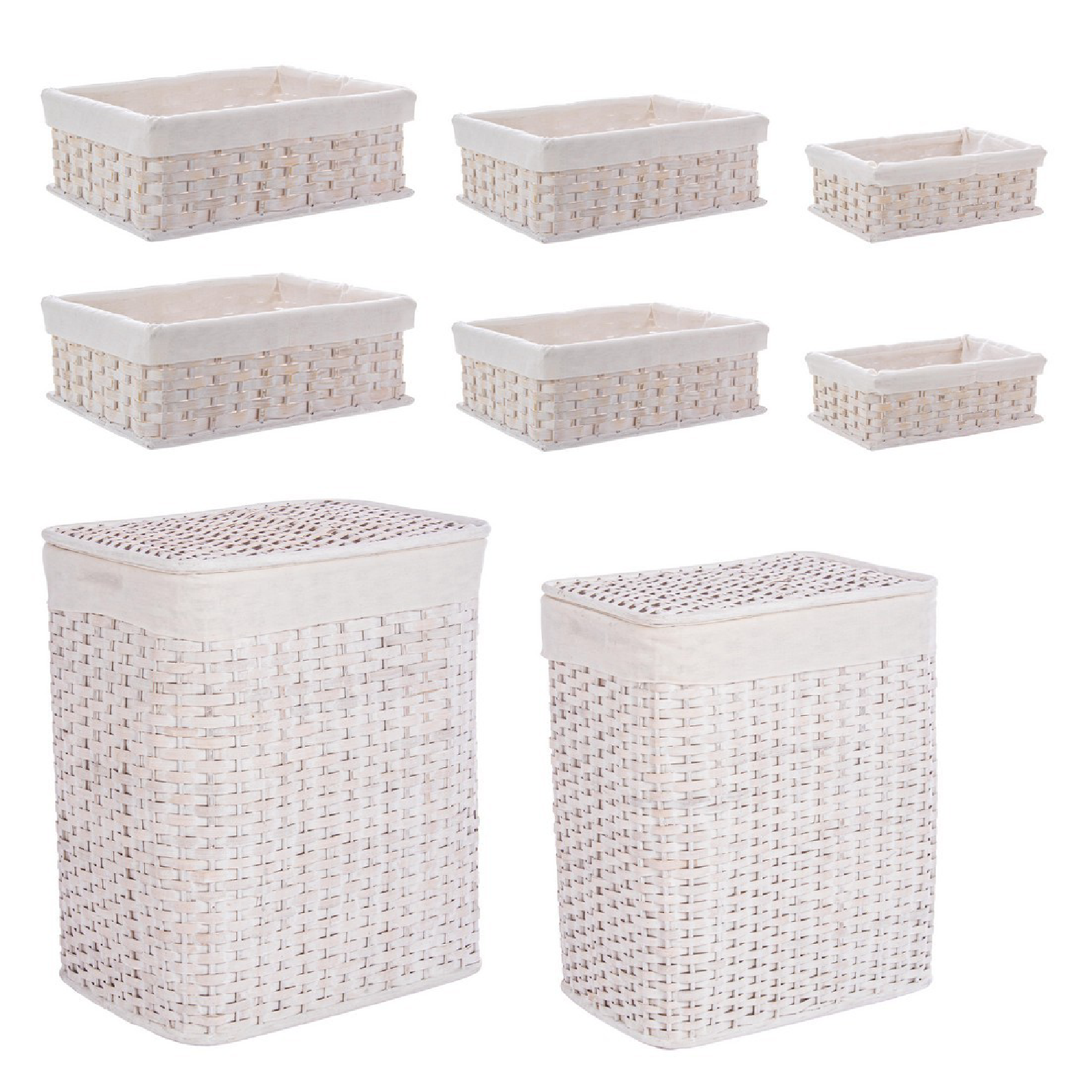 Set 2 porta biancheria "Homely rettangolare" 6 ceste in rattan e bambù