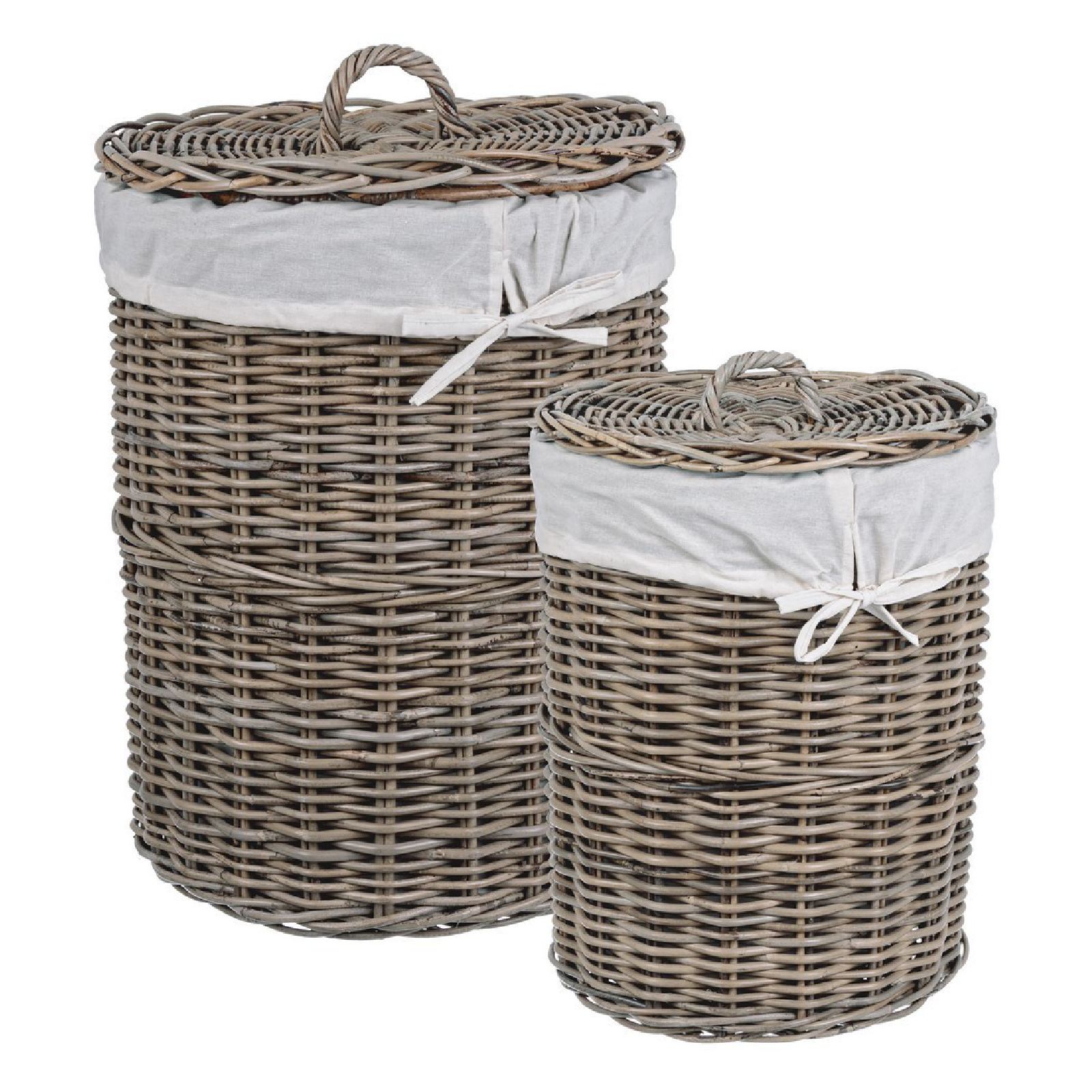 Set 2 Porta biancheria "Narra" struttura in rattan e tessuto interno in cotone