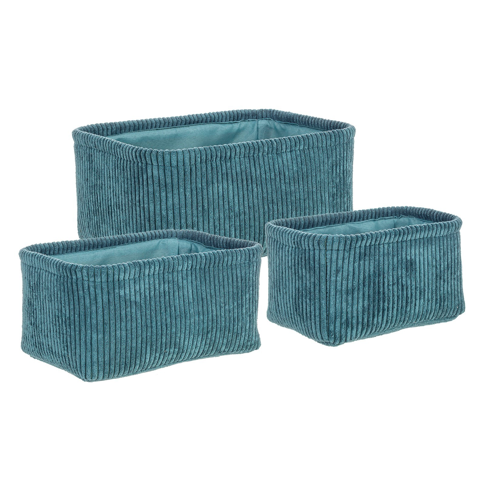 Il colore ottanio aggiunge un tocco di eleganza e vivacità all'ambiente domestico, rendendo questi portaoggetti non solo funzionali ma anche esteticamente piacevoli. Questi contenitori sono realizzati in poliestere, un materiale leggero e resistente che garantisce una lunga durata nel tempo.