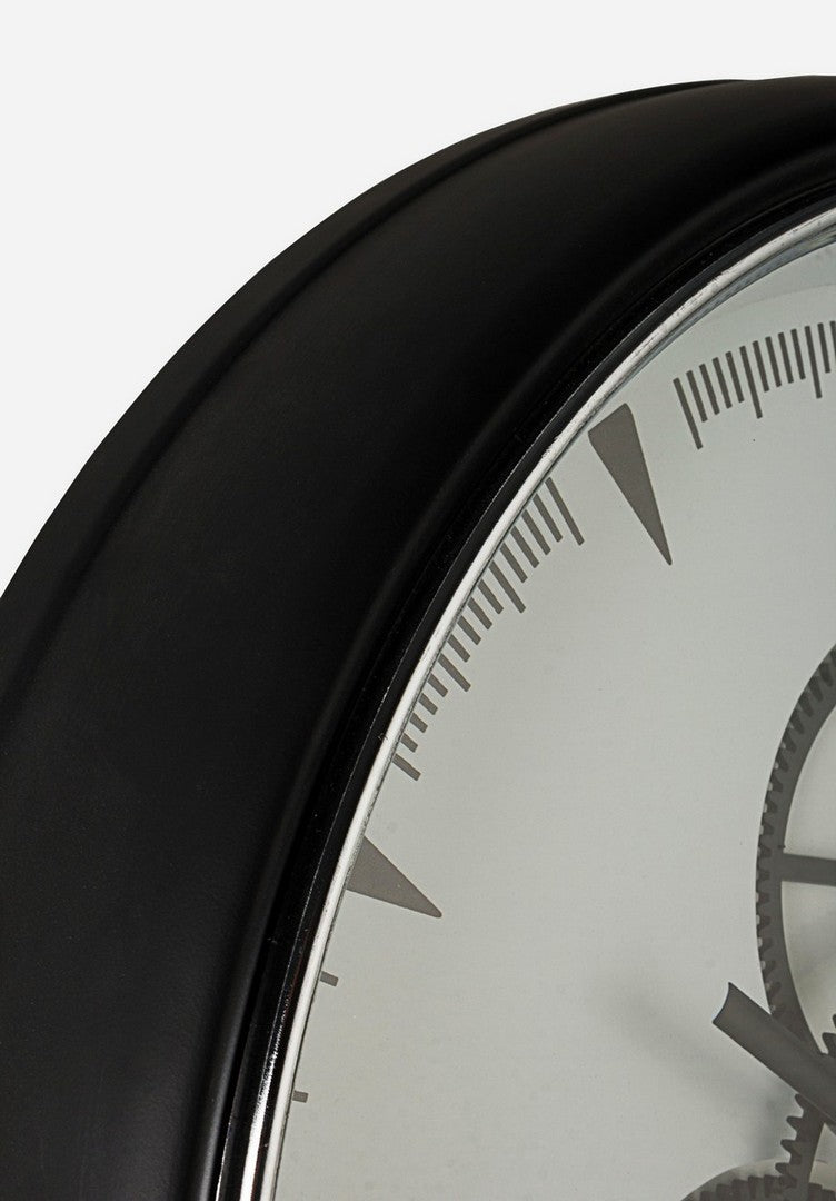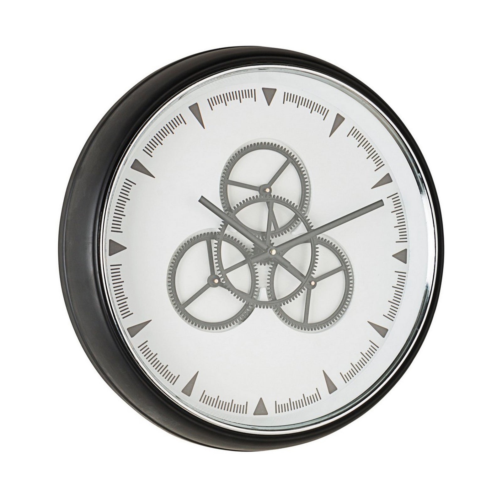 L'orologio da parete "Engrenage" è un raffinato complemento d'arredo caratterizzato da un design industriale ed elegante, con un diametro di 50 cm che lo rende un elemento decorativo di grande impatto visivo.