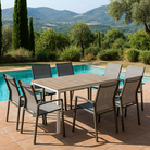 La seduta e lo schienale, invece, sono realizzati in texilene 2x1, un materiale innovativo e di alta qualità, che garantisce un comfort ottimale grazie alla sua resistenza all'acqua e al sole.