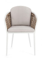 La sedia con braccioli "Maribela" è un'elegante e confortevole sedia progettata per l'uso all'esterno. La sua struttura e le gambe sono realizzate in alluminio, che conferisce alla sedia una resistenza superiore alla corrosione e la rende leggera e facile da spostare.