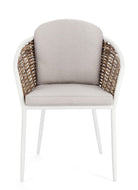Sedia con braccioli "Maribela" struttura e gambe in alluminio, per esterno, seduta con cuscini