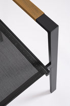 Il textilene della seduta, un materiale sintetico resistente e traspirante, offre una superficie comoda e robusta, ideale per supportare il peso in modo uniforme e durare nel tempo.