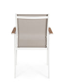 La struttura in alluminio, leggera e robusta, conferisce alla sedia una grande durabilità e una resistenza superiore agli agenti atmosferici, come la ruggine e la corrosione, rendendola perfetta per l'uso all'aperto.