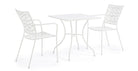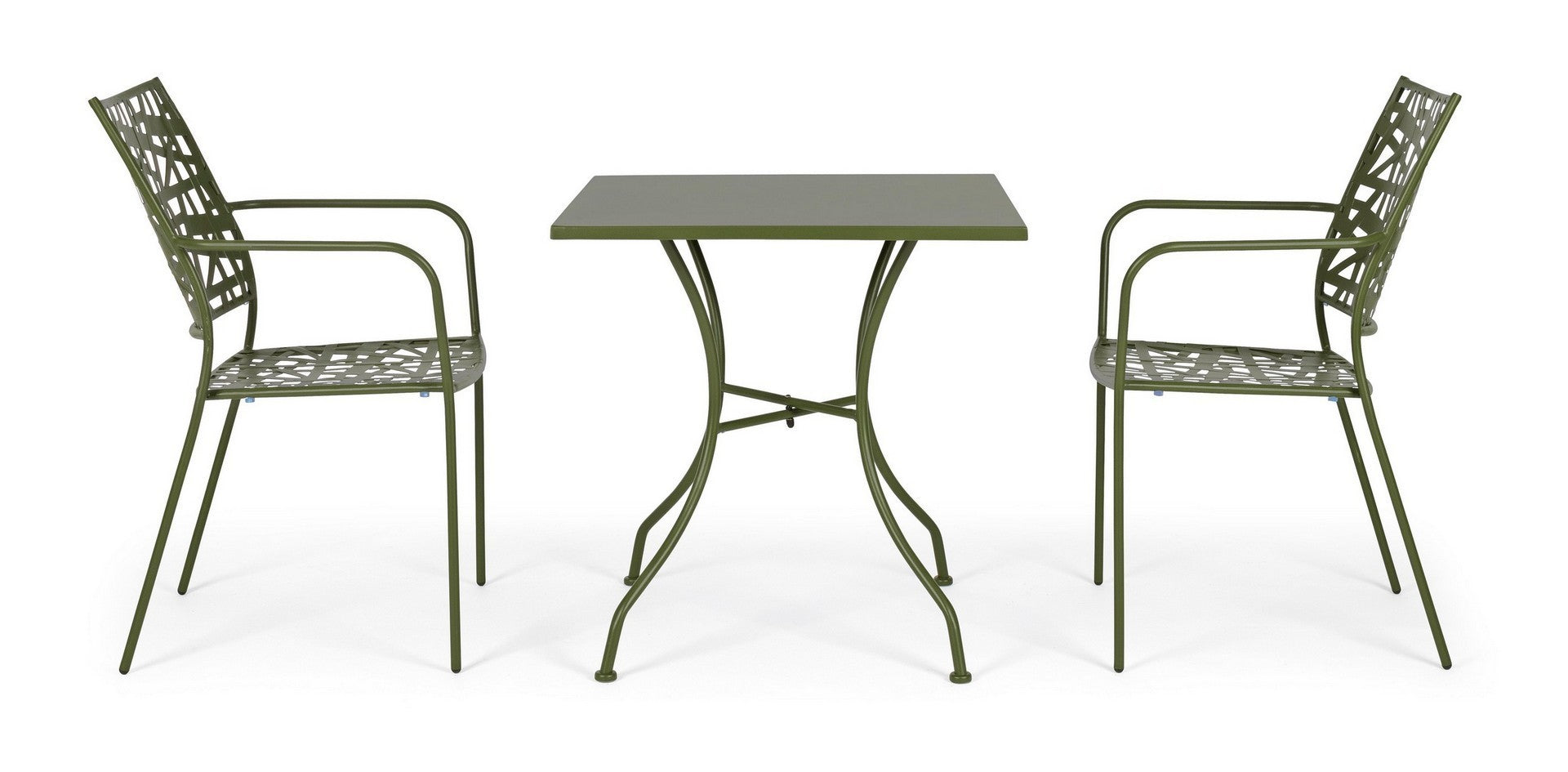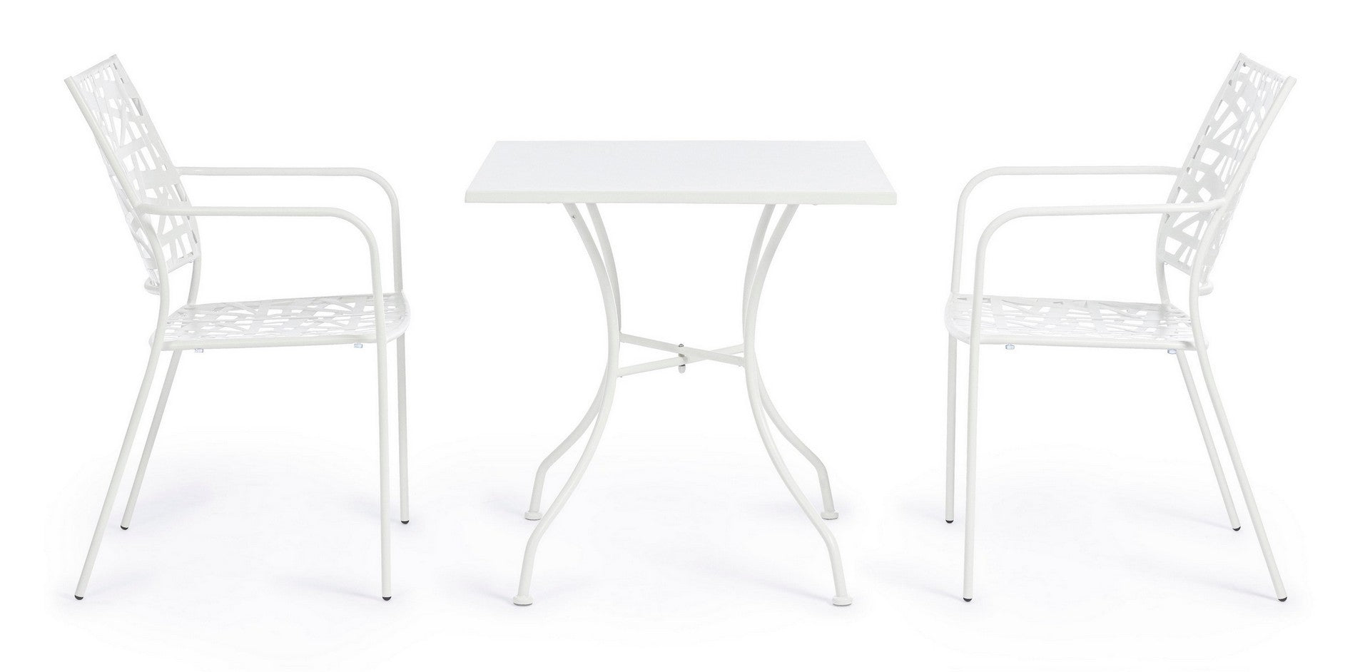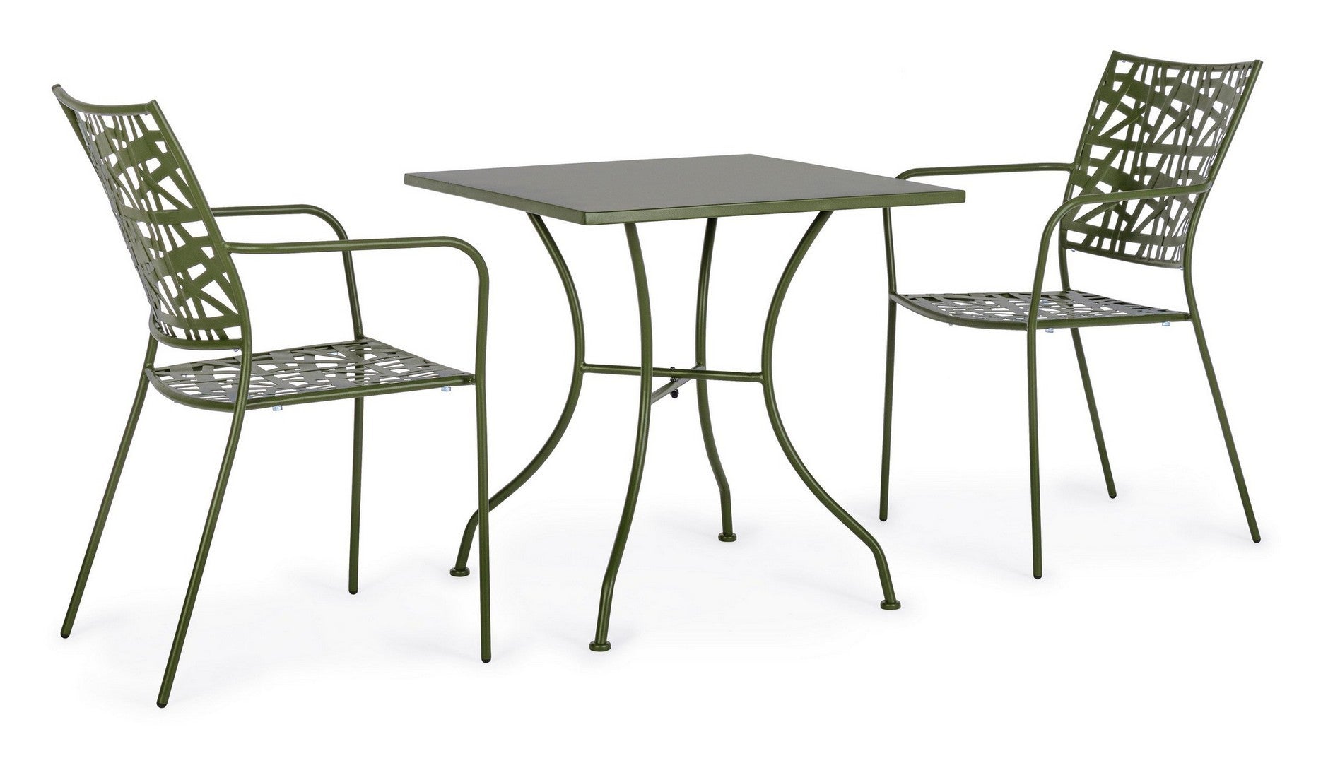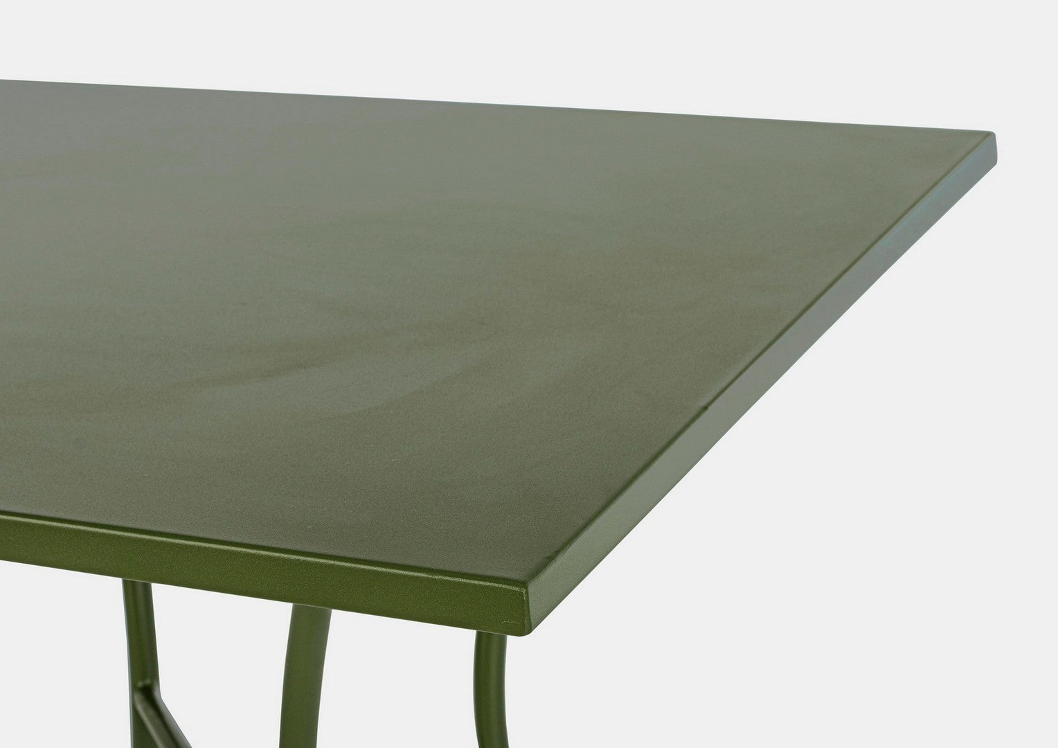 Complessivamente, il prodotto descritto è realizzato in acciaio trattato e verniciato per resistere all'uso esterno, presenta una finitura opaca, è impilabile per un facile stoccaggio e viene imballato senza l'uso di cartone.