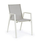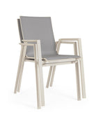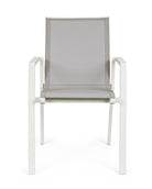 La finitura della struttura in alluminio è progettata per resistere agli agenti atmosferici, mantenendo la sedia in ottime condizioni anche con esposizione all'umidità o al sole, caratteristica che la rende una scelta perfetta per l’arredamento di aree esterne.