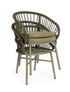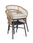 La sedia è arricchita da un cuscino morbido, che assicura una seduta comoda e accogliente, ideale per rilassarsi all'aperto.