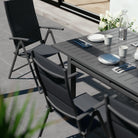 Il tessuto della seduta e lo schienale in PVC intrecciato offre elasticità, resistenza agli agenti atmosferici e può essere pulito facilmente. La sua struttura in alluminio è la tua garanzia di alta resistenza per gli anni a venire.