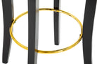 Questo dettaglio in oro contrasta splendidamente con il velluto, creando un effetto visivo di grande impatto. La fascia dorata non solo aggiunge un elemento decorativo, ma sottolinea anche la forma rotonda dello sgabello, mettendone in risalto il design.