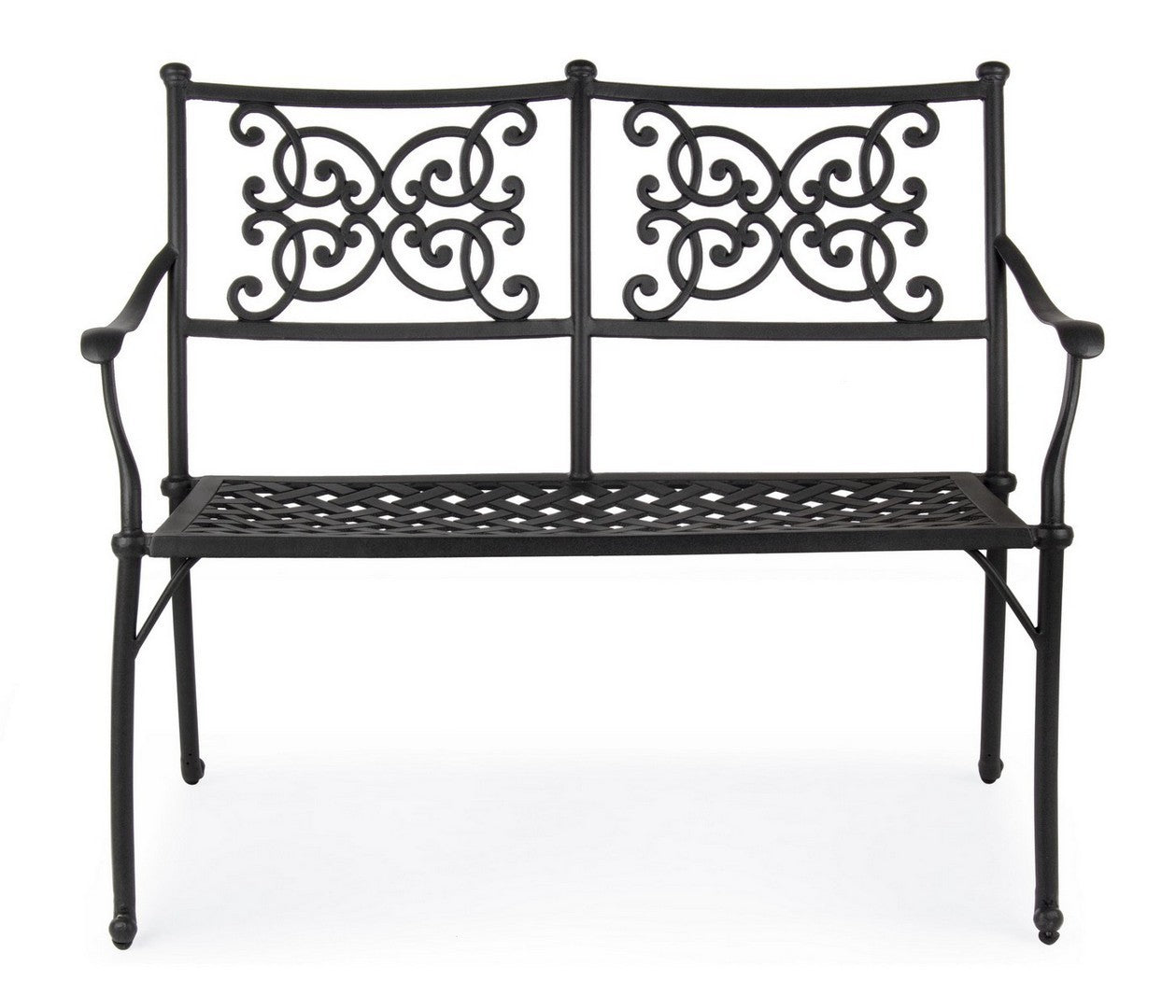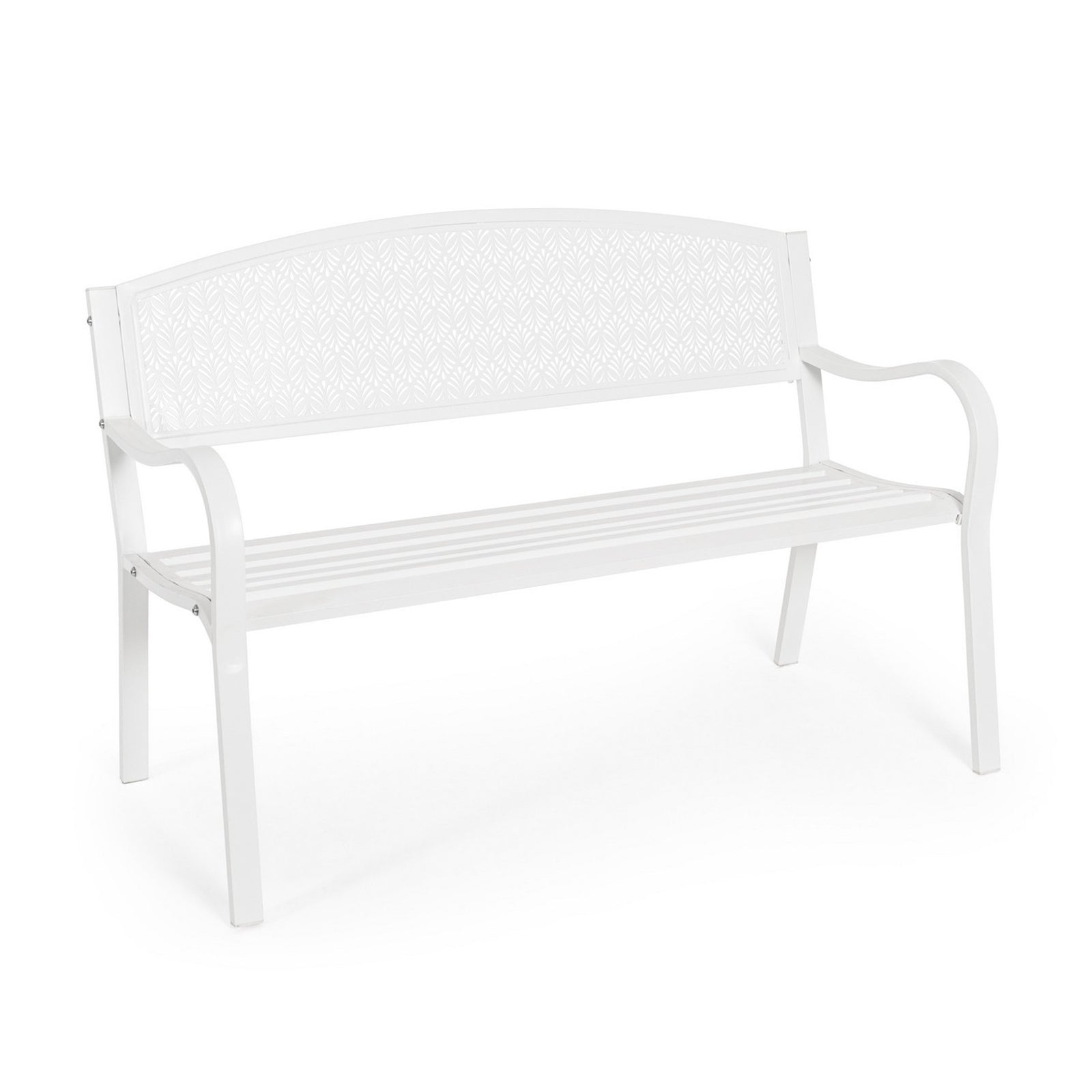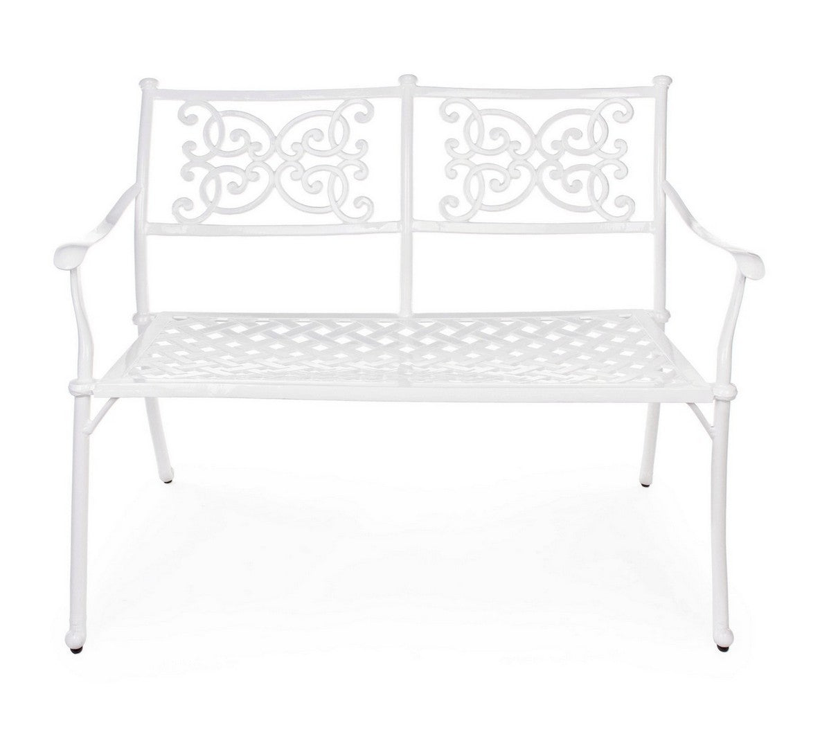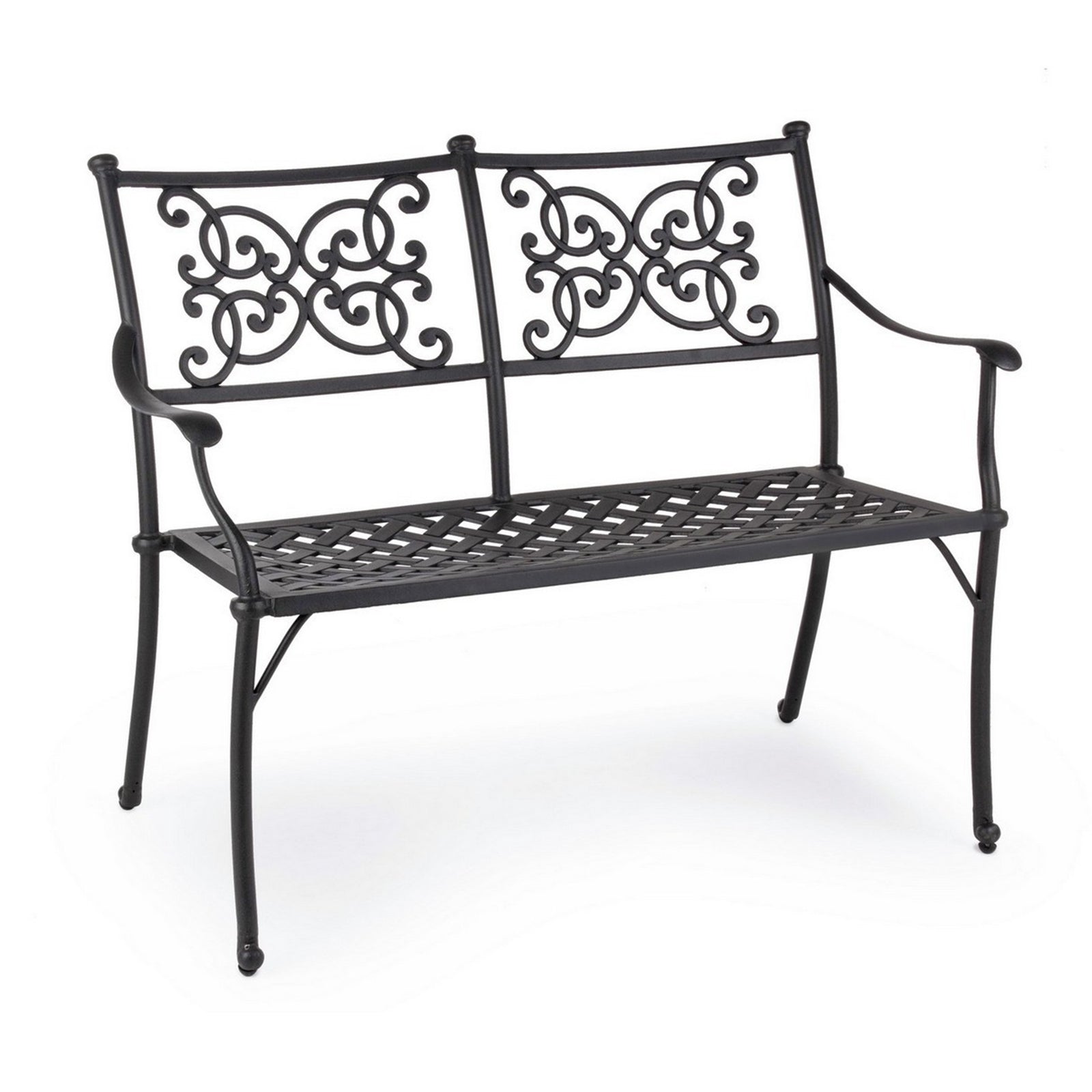 Panchina da giardino "Lizette" in acciaio trattato per esterno e veranda, con braccioli