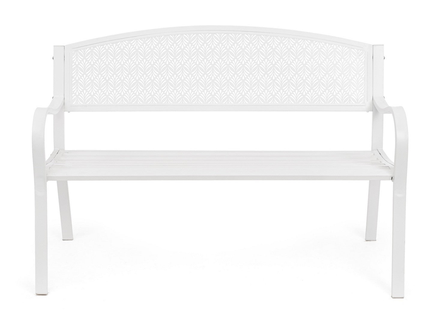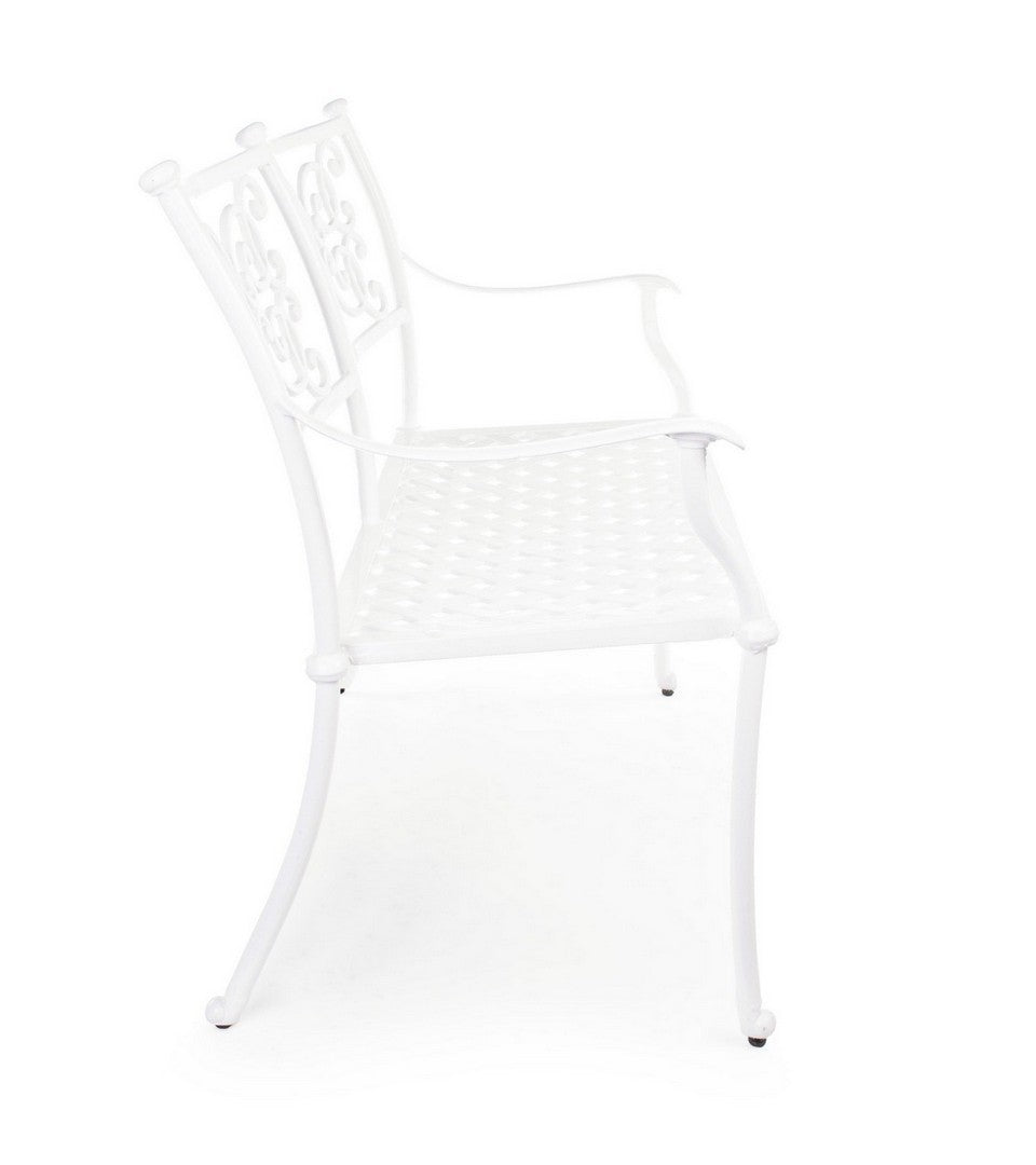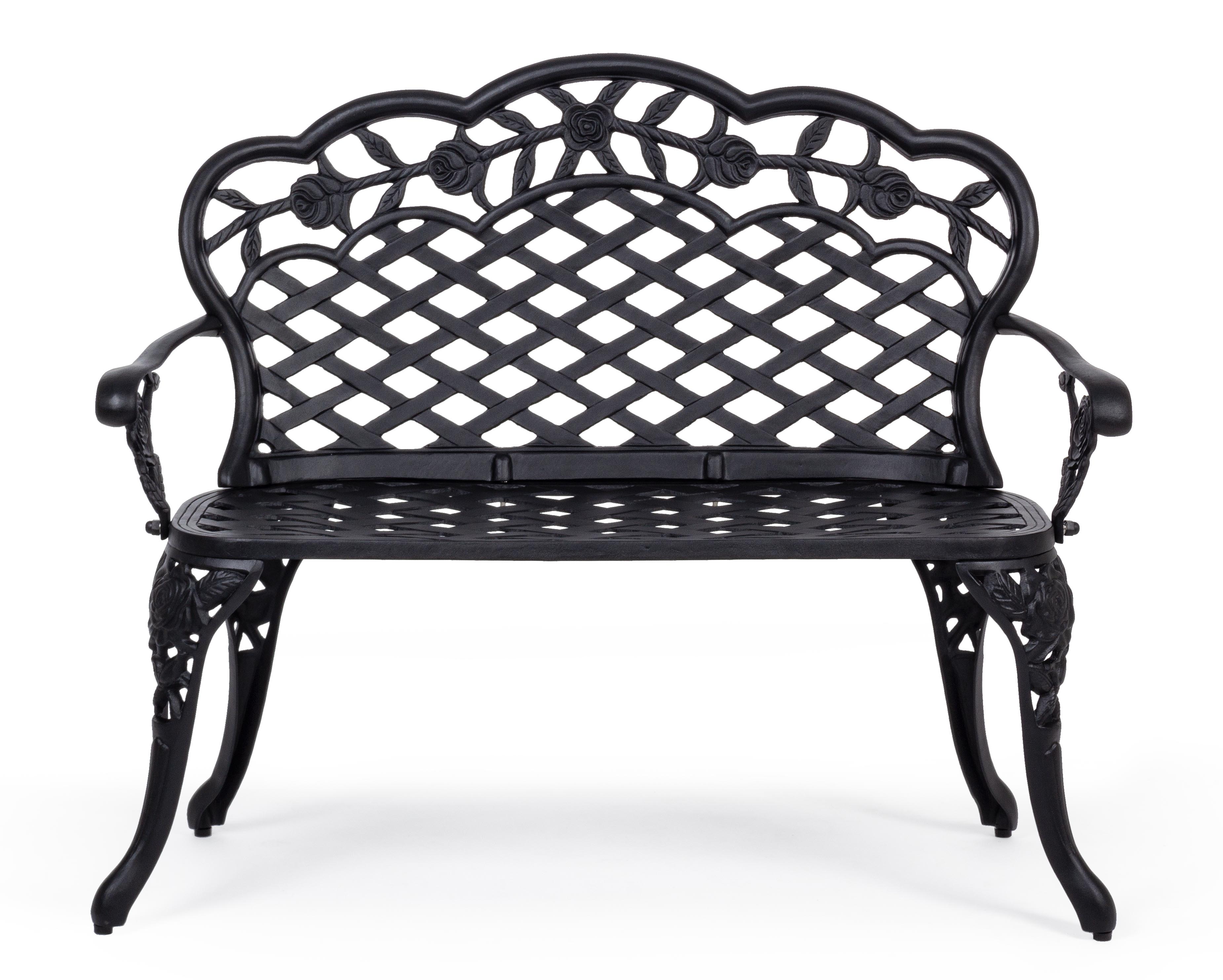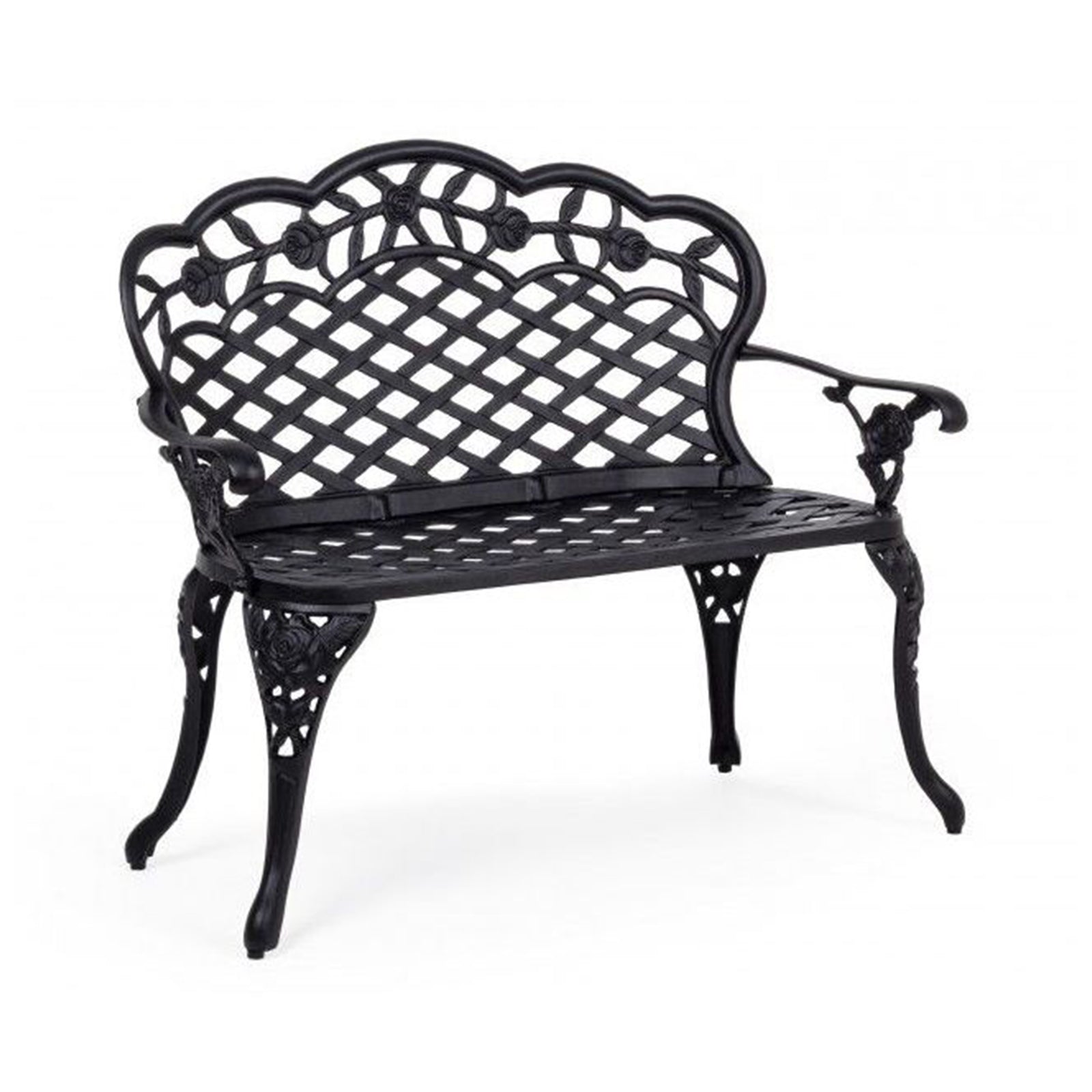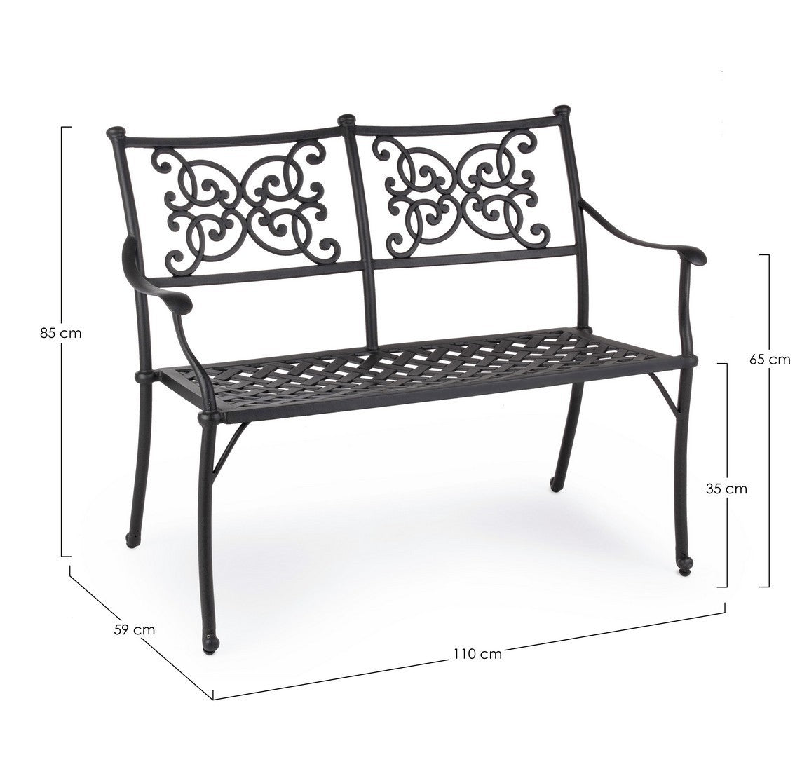 Panchina da giardino "Lizette" in acciaio trattato per esterno e veranda, con braccioli