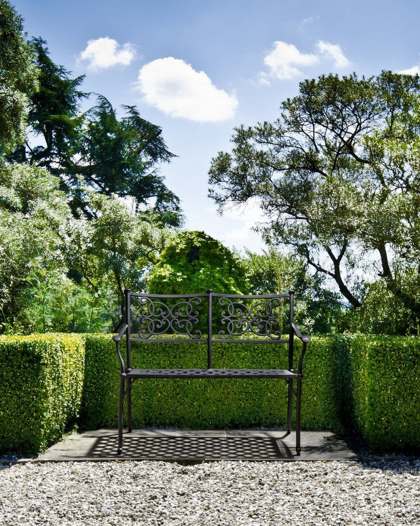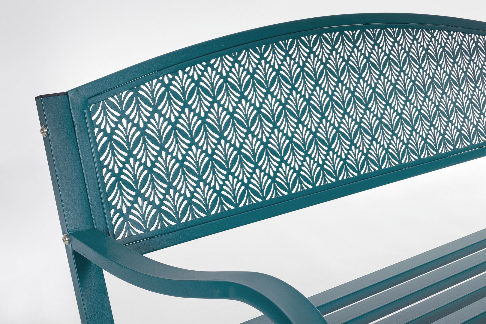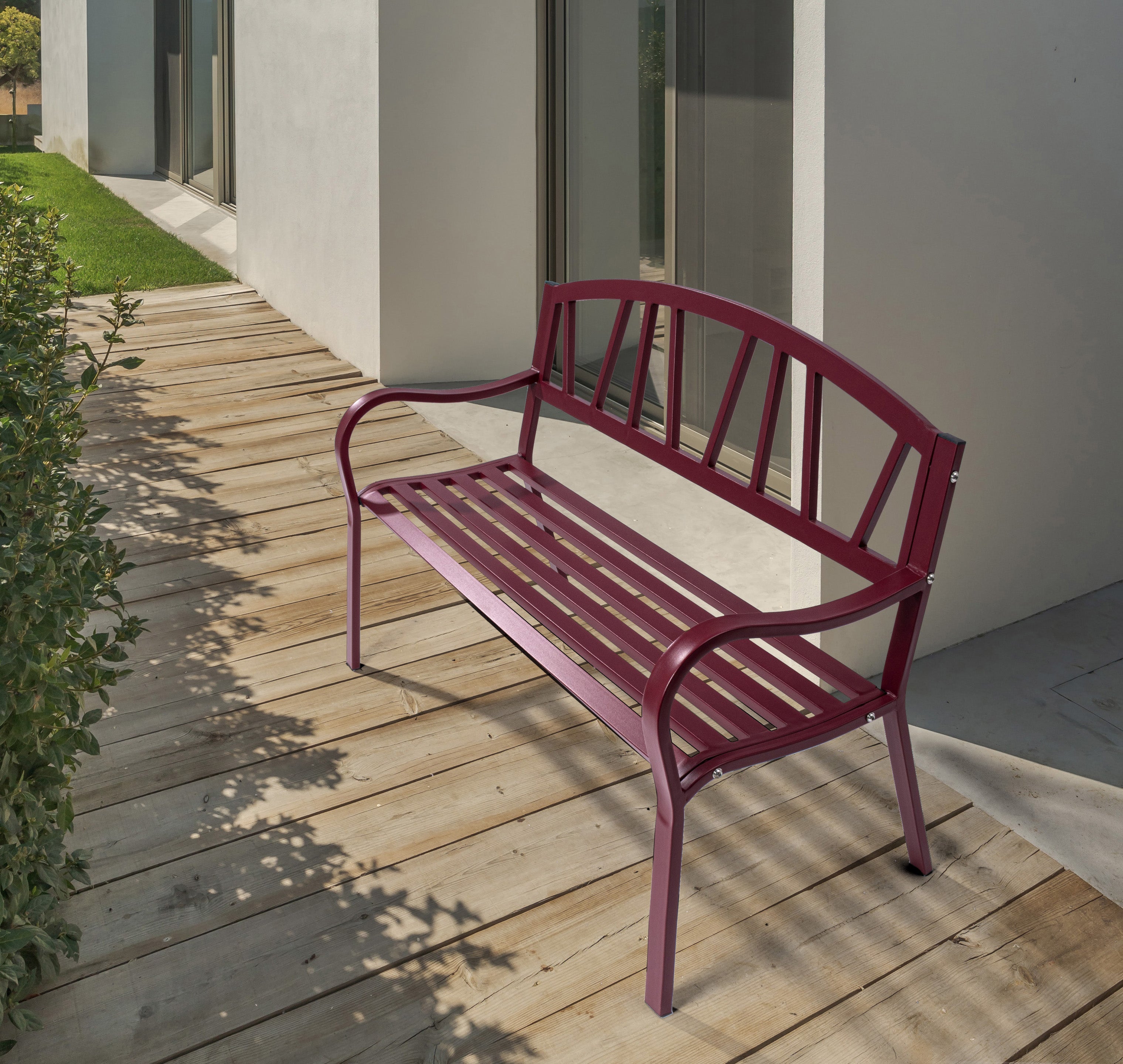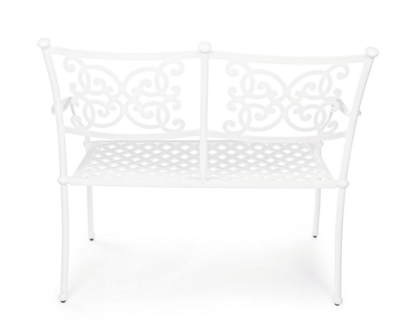 Panchina da giardino "Lizette" in acciaio trattato per esterno e veranda, con braccioli