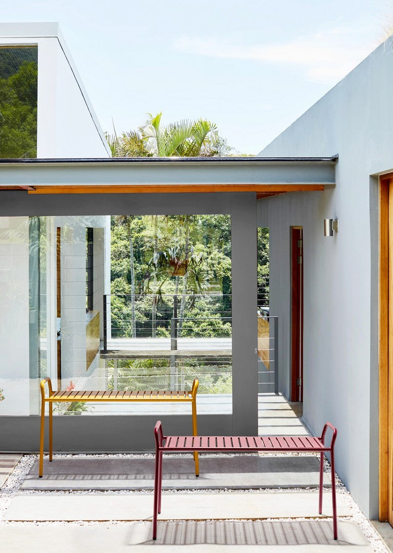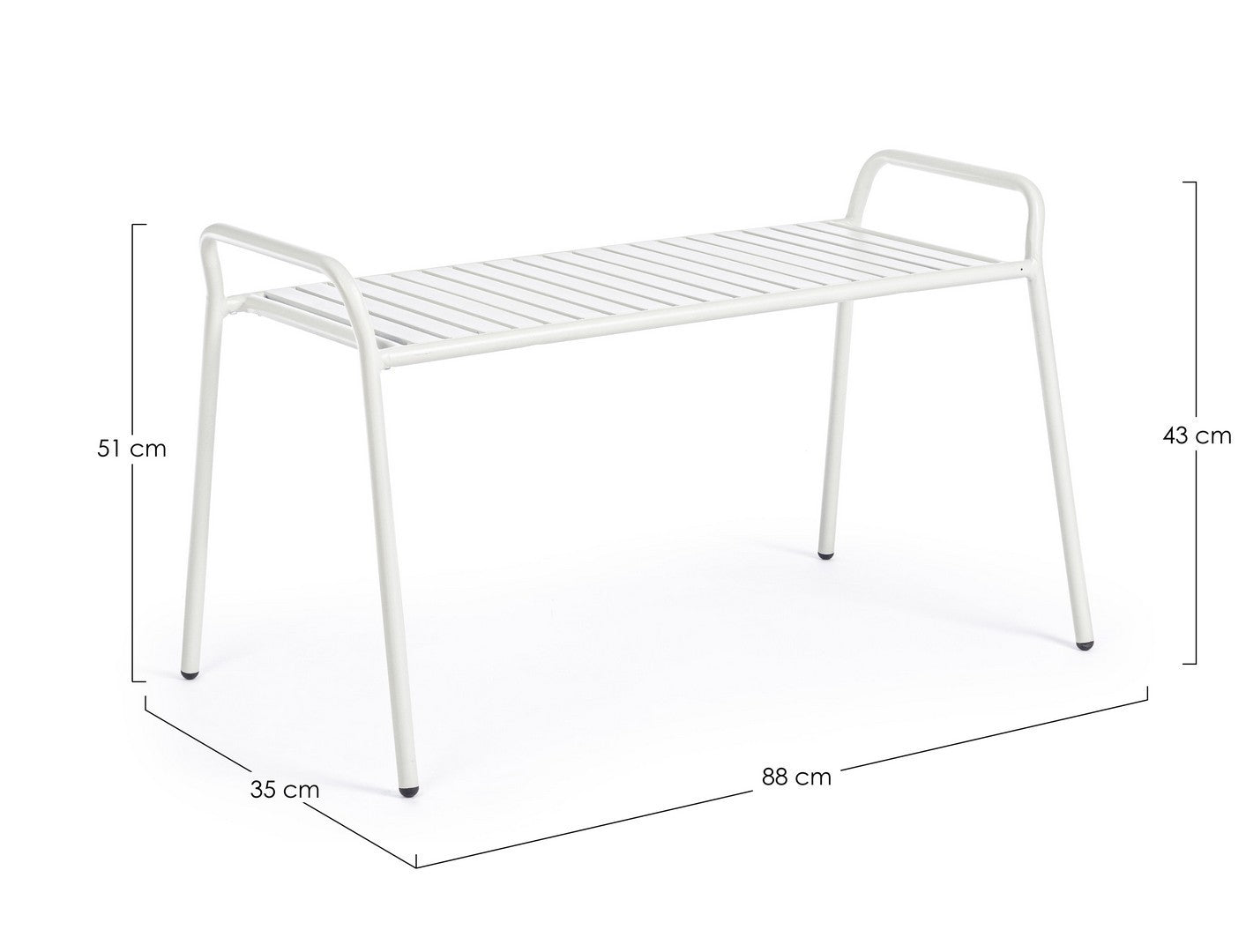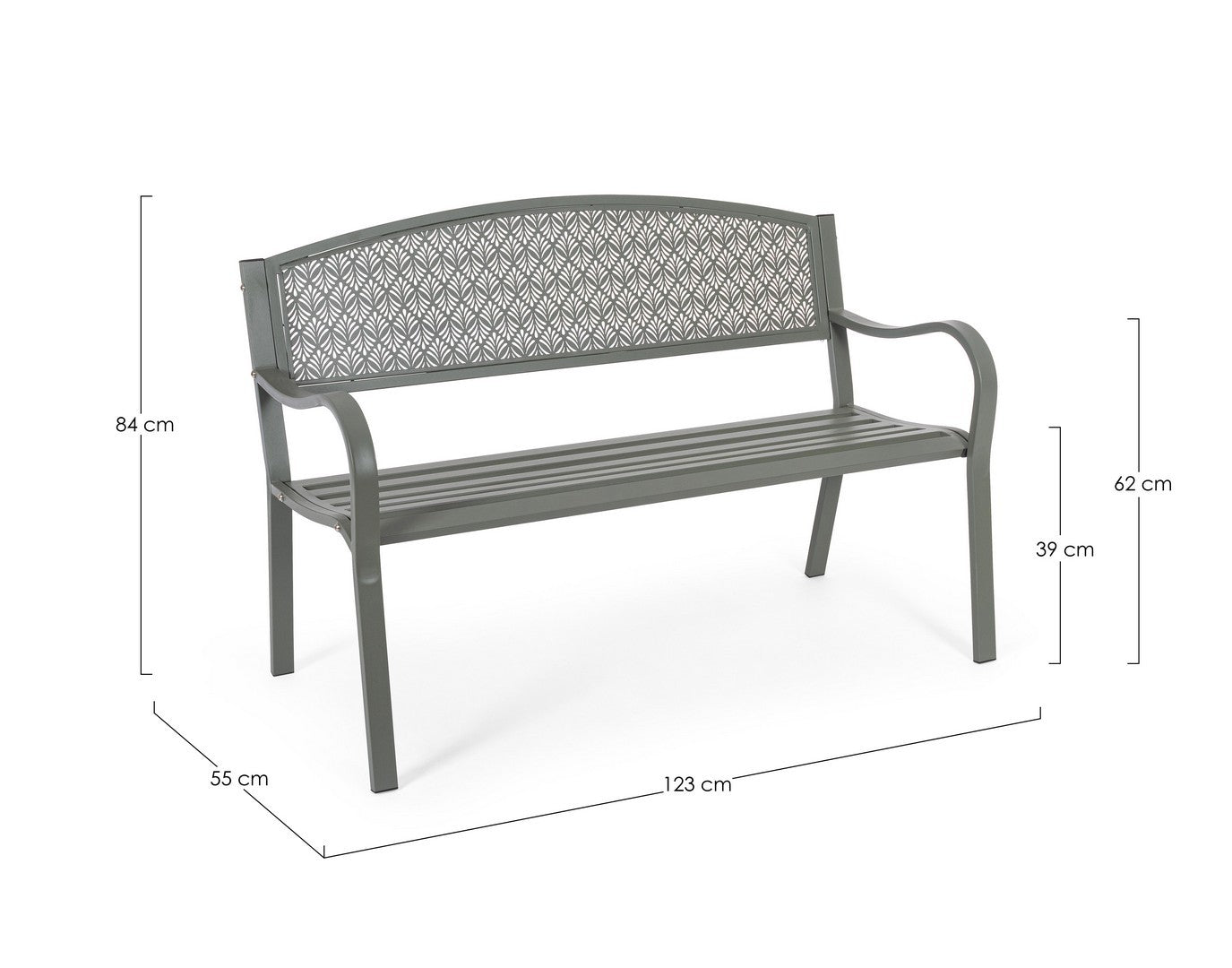 La panchina è dotata di comodi braccioli, che offrono un supporto aggiuntivo per l'utente. Grazie al trattamento e alla verniciatura, la panchina è protetta dall'ossidazione e dalla corrosione.
