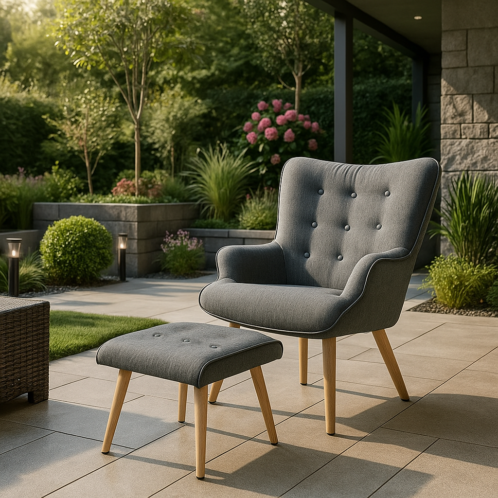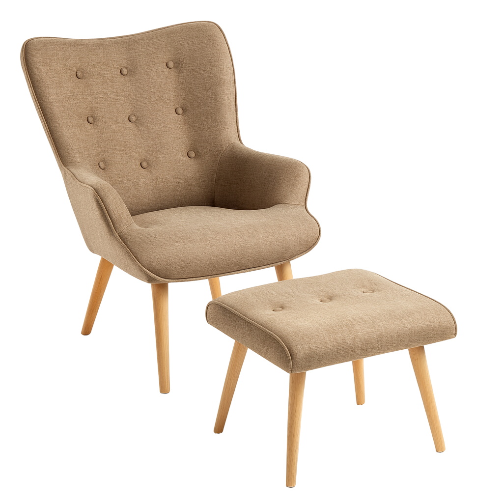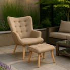 Questa poltrona con poggiapiedi imbottito combina stile, funzionalità e comodità.