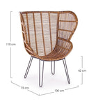 Poltrona "Estefan" per interno, Seduta In Rattan Ed Intreccio In Kubu 100 x 75 x 118h cm