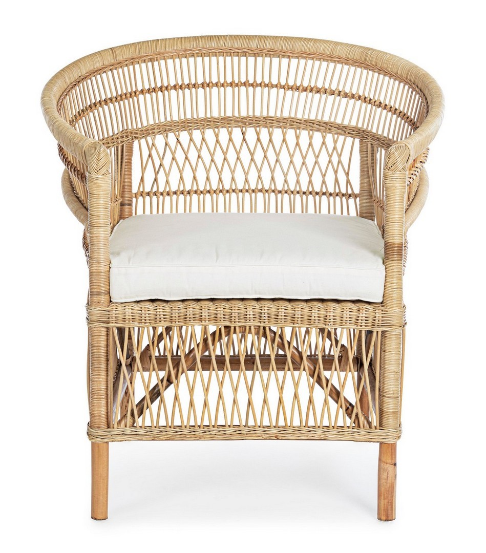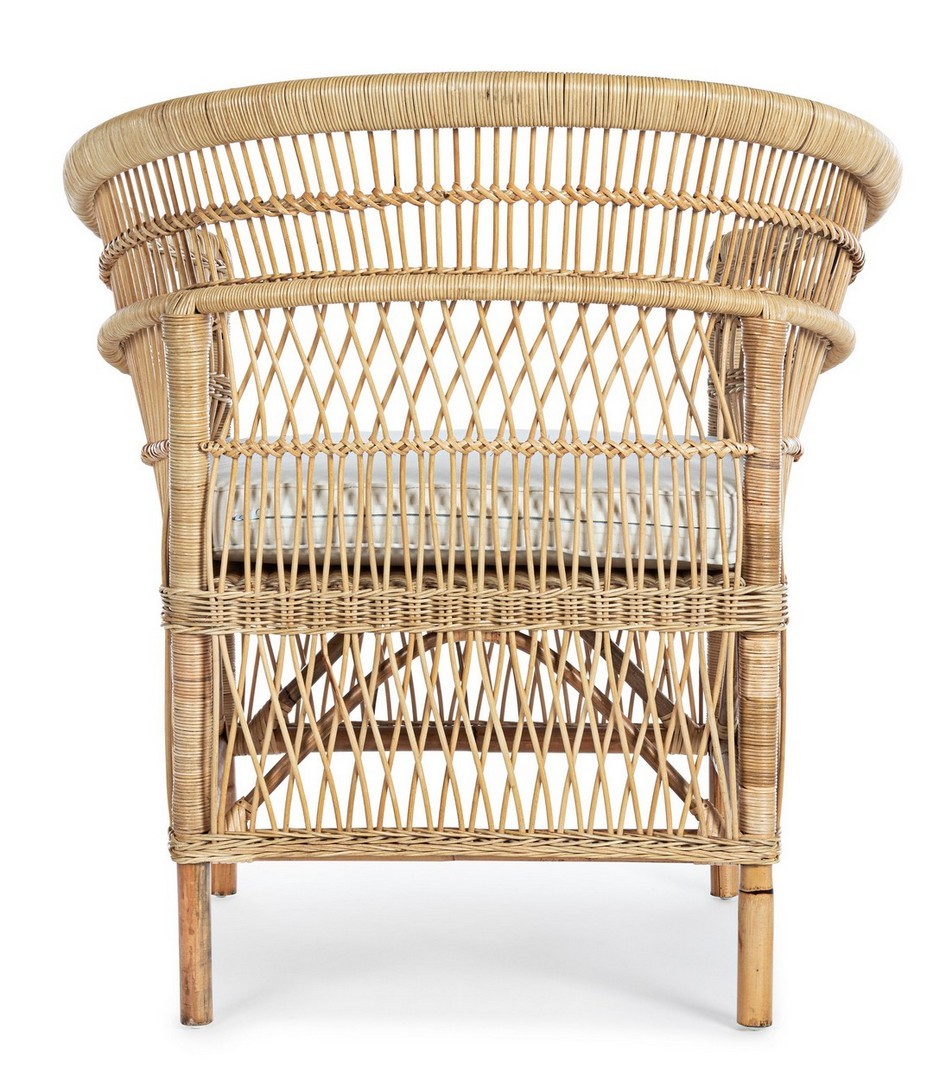 Poltrona "Josefina" per interno, in Rattan naturale con cuscino h 86 cm