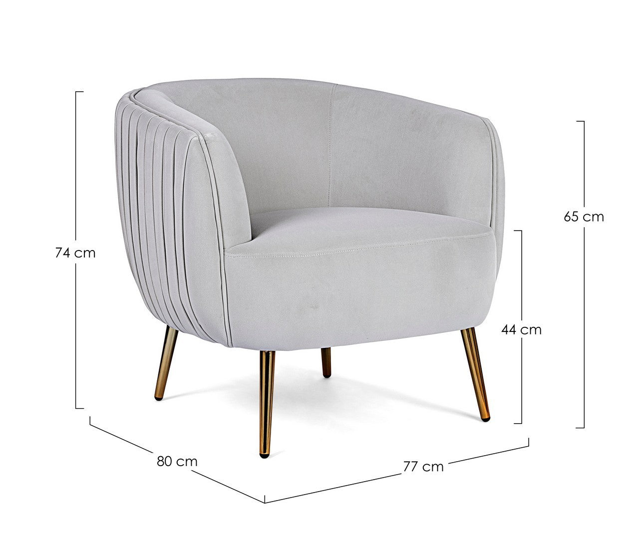 Poltrona "Linsay" in velluto Grigio arredamento per salotto moderno h 74 cm