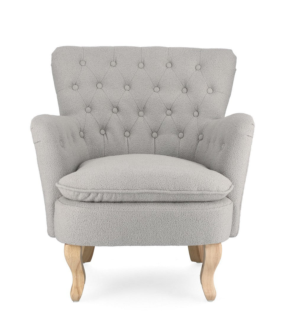 Poltrona "Orlins" per interno, Struttura In Legno Di Pino E Compensato, Rivestimento In Poliestere Effetto Boucle', Capitonne' 71.5 x 72.5 x 79h cm