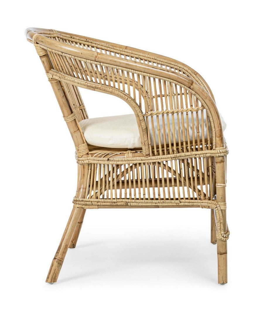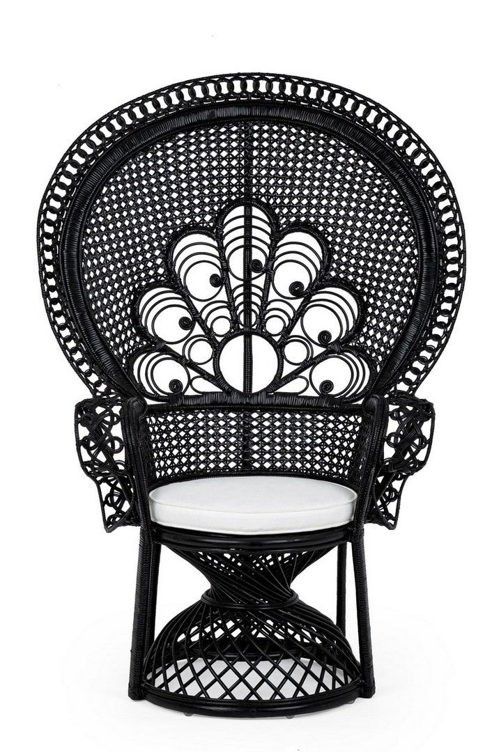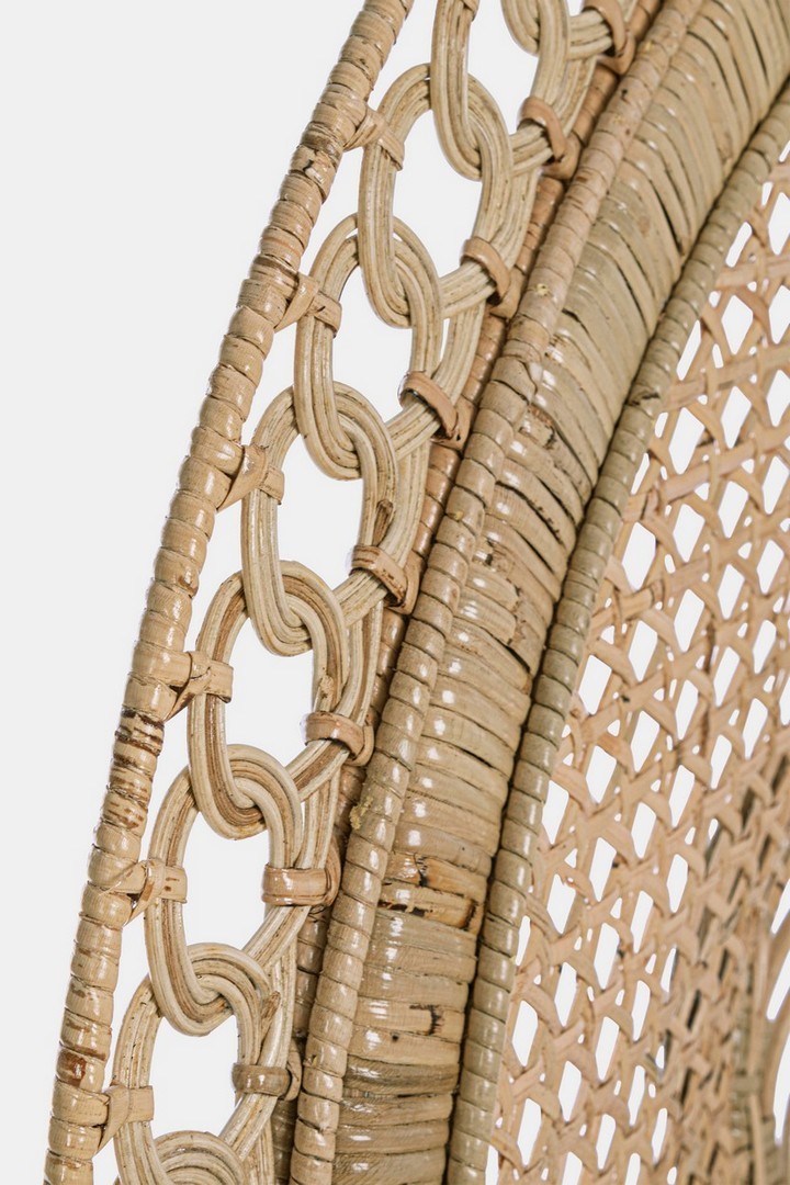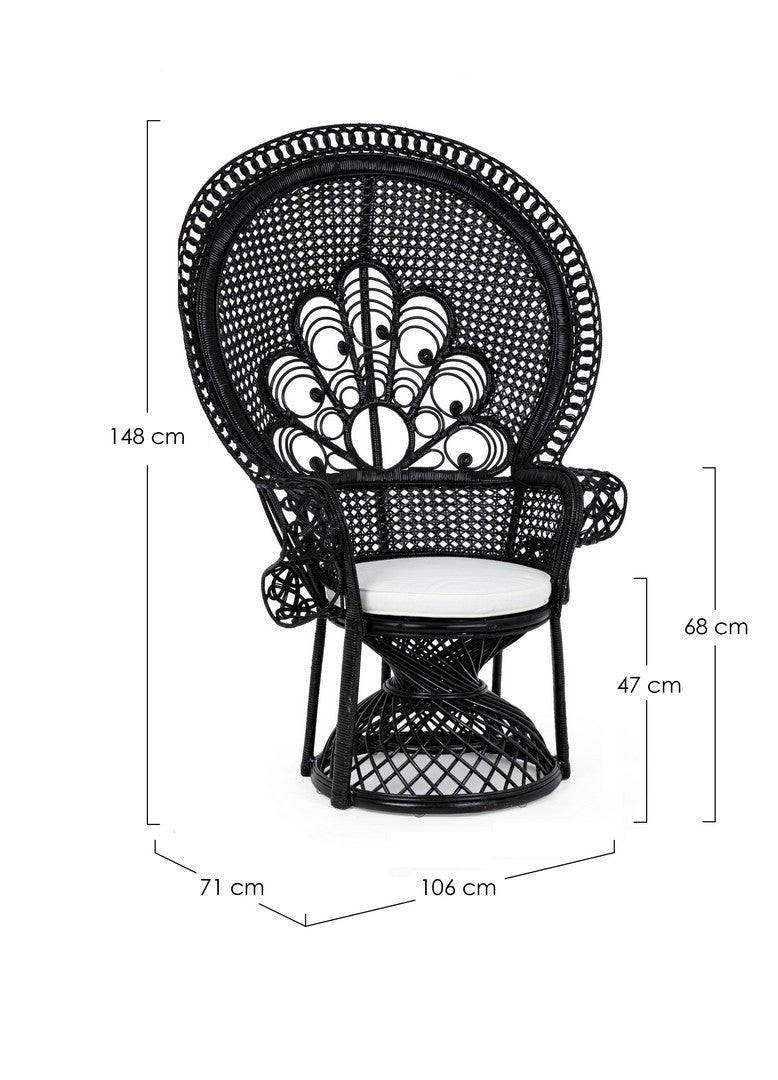 La poltrona "Peacock" è un'elegante e confortevole soluzione per l'arredamento interno. La sua struttura in rattan conferisce resistenza e durabilità, mentre l'intreccio in midollino aggiunge un tocco di stile e artigianalità.