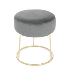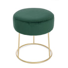 Pouf modello Clarissa in velluto, realizzato con struttura in legno di pino e MDF, base in acciaio verniciato a polvere epossidica colore oro